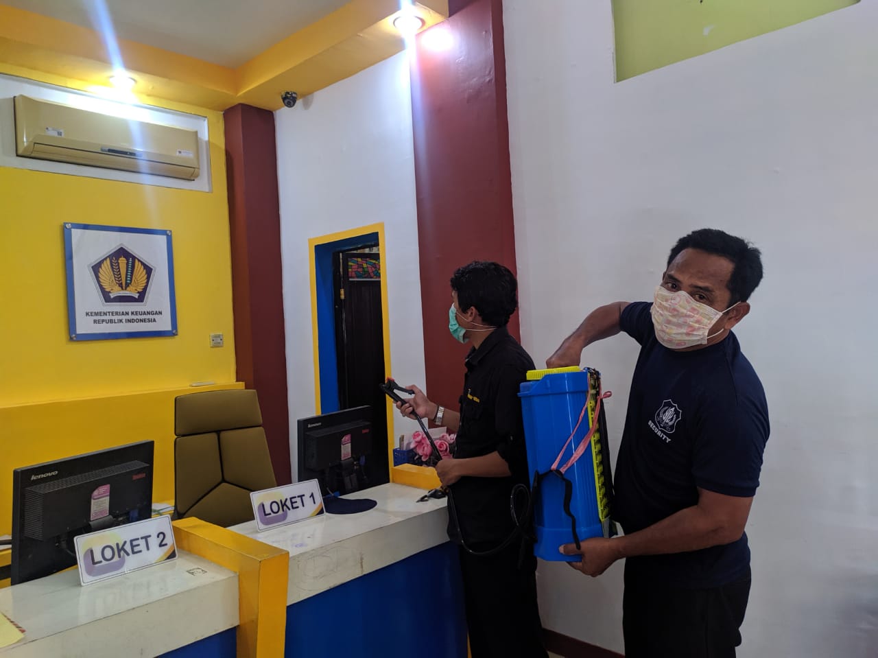 Sebagai langkah pencegahan penyebaran virus corona (COVID-19) dan dalam rangka memaksimalkan penutupan layanan tatap muka, Kantor Pelayanan, Penyuluhan, dan Konsultasi Perpajakan (KP2KP) Sinjai melakukan penyemprotan cairan disinfektan ke seluruh ruangan kantor di Sinjai (Kamis, 30/4). Penyemprotan ini dilaksanakan secara komprehensif di tujuh ruangan di lingkungan KP2KP Sinjai, termasuk kamar mandi dan kamar-kamar di rumah dinas.