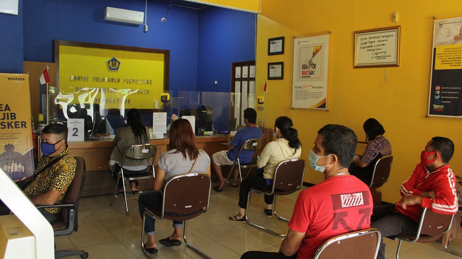 Wajib pajak ramai memadati Kantor Pelayanan Penyuluhan dan Konsultasi Perpajakan (KP2KP) Bengkayang pada hari terakhir masa pelaporan SPT Tahunan Pajak Penghasilan Wajib Pajak Orang Pribadi Tahun Pajak 2020, Bengkayang (Rabu, 31/3). Tahun pajak 2020 ini, jumlah wajib pajak yang melakukan pelaporan SPT Tahunan Orang Pribadi di wilayah kerja KPP Pratama Singkawang adalah sekitar 103,19% dari total wajib pajak yang sudah memiliki kewajiban pelaporan tersebut. Angka ini menjadi yang capaian tertinggi se-Kalimantan Barat per 31 Maret 2021.
