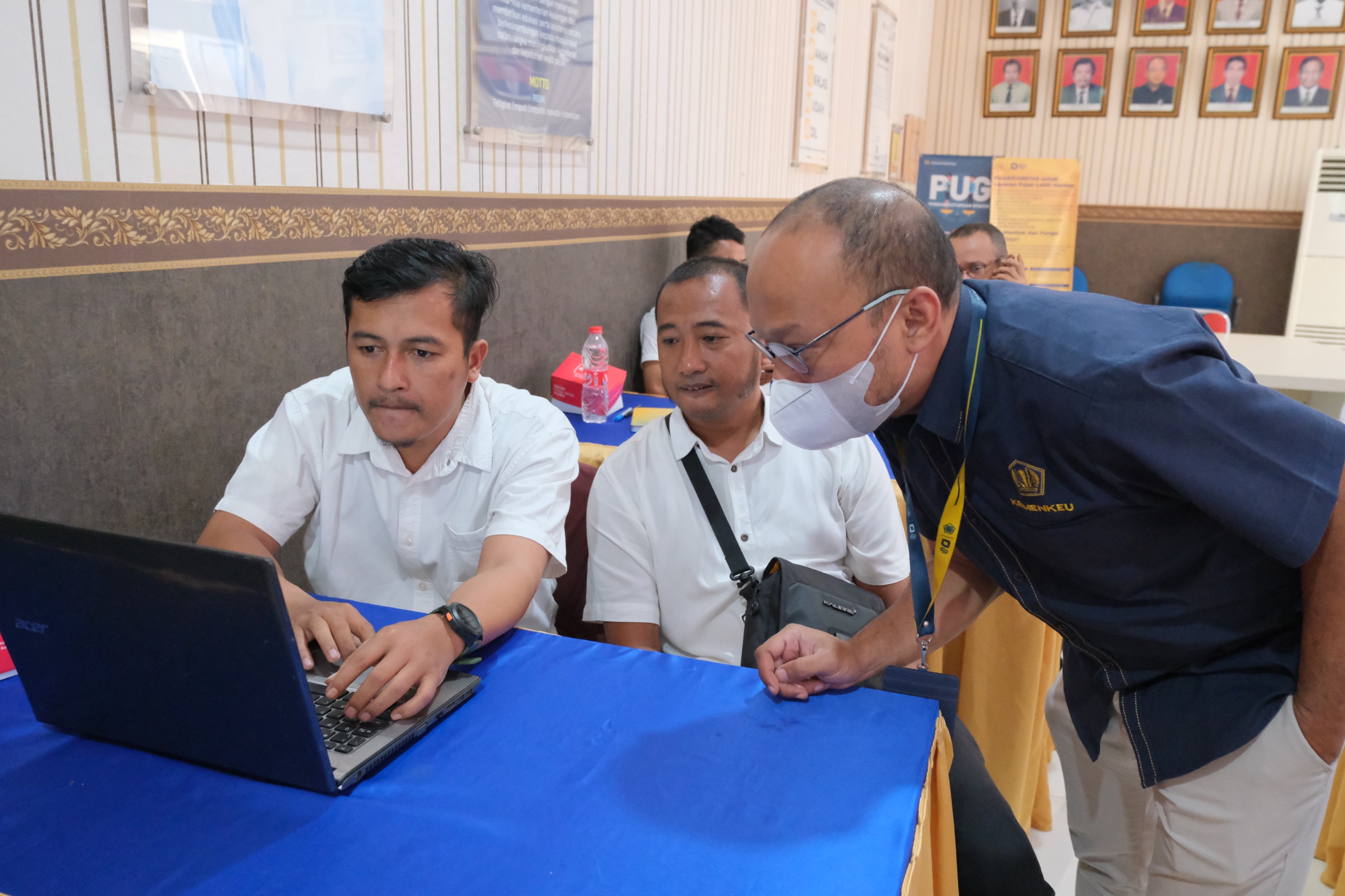 Para peserta menyimak materi yang disampaikan sekaligus mempraktikkan langsung aplikasi Coretax DJP pada perangkat laptop masing-masing didampingi Tim Penyuluh Pajak dan Account Representative pengampu wilayah Kabupaten Tasikmalaya.