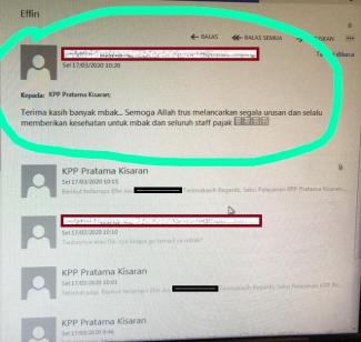 “Terima kasih banyak mbak… Semoga Allah terus melancarkan segala urusan dan selalu memberikan kesehatan untuk mbak dan seluruh staf pajak,” tulis wajib pajak dalam balasan email-nya yang ditujukan kepada KPP Pratama Kisaran.