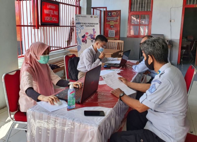 Kantor Pelayanan, Penyuluhan, dan Konsultasi Perpajakan (KP2KP) Benteng melaksanakan kegiatan asistensi pelaporan Surat Pemberitahuan (SPT) Tahunan di Rumah Tahanan (Rutan) Kelas IIB Kabupaten Kepulauan Selayar (Kamis, 25/3). Kegiatan yang berlangsung di koridor rutan ini, diikuti oleh para pegawai Rumah Tahanan (Rutan) Kelas IIB Kabupaten Kepulauan Selayar.