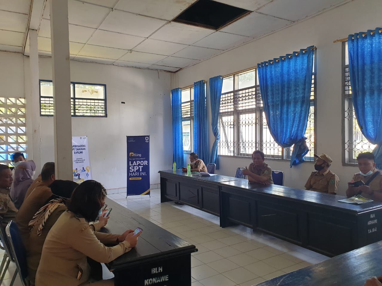 Kantor Pelayanan, Penyuluhan, dan Konsultasi Perpajakan (KP2KP) Unaaha mengadakan kelas pajak di Aula Dinas Lingkungan Hidup Kabupaten Konawe (Senin, 22/3). Kegiatan dikemas dalam kegiatan Lapor Bareng SPT Tahunan secara e-Filing.