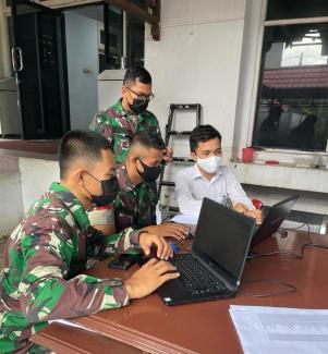 Asisten Penyuluh (Aspen) Pajak Kantor Pelayanan Pajak (KPP) Pratama Singkawang mendampingi beberapa anggota Tentara Nasional Indonesia Angkatan Darat (TNI-AD) melakukan pelaporan Surat Pemberitahuan (SPT) Wajib Pajak Orang Pribadi (WPOP). “Bapak-bapak TNI-AD ini berasal RINDAM TPR Pasir Panjang Singkawang dan datang untuk meminta asistensi pelaporan SPT dengan efiling,” ujar Shalahudin Saesar di halaman belakang KPP Pratama Singkawang (Senin, 24/01).