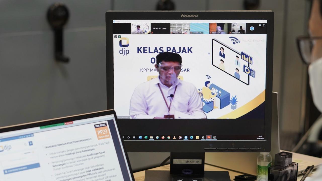 Kantor Pelayanan Pajak (KPP) Madya Makassar kembali menggelar Kelas Pajak Daring dengan Tema “Edukasi terkait Insentif Perpajakan (PMK-110/PMK.03/2020)” melalui aplikasi Zoom Cloud Meeting di Ruang Seksi Pelayanan KPP Madya Makassar, Kota Makassar (Senin, 28/9). Kegiatan ini diikuti oleh 35 wajib pajak yang terdaftar di KPP Madya Makassar.