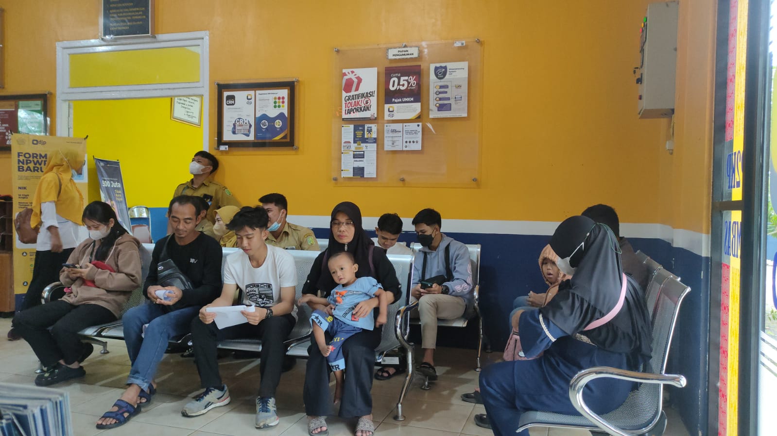 Jam sudah menunjukkan pukul 11.00 WIB siang hari tetapi antrian masih saja ramai. Beberapa waktu kemudian beberapa pegawai dari Puskesmas beramai-ramai datang untuk melaporkan SPT Tahunan 2022. Melihat panjangnya antrian yang sangat timpang dengan jumlah petugas TPT (Tempat Layanan Terpadu) yang bertugas, Petugas TPT tidak habis akal untuk memberikan pelayanan terbaik dan profesional. Petugas TPT pun berinisiatif untuk mengumpulkan Wajib Pajak OP ke dalam ruang Aula KP2KP Sambas untuk dilakukan asistensi bersamaan mengenai Pelaporan SPT Tahunan 2022 melalui laman www.pajak.go.id.