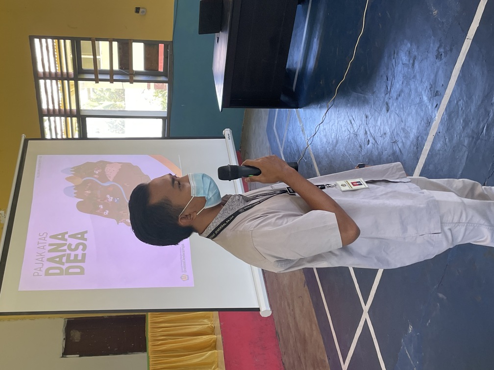 Kegiatan ini bertujuan untuk memberikan pemahaman terkait hak dan kewajiban perpajakan kepada bendahara desa pada saat mengelola dana desa.
