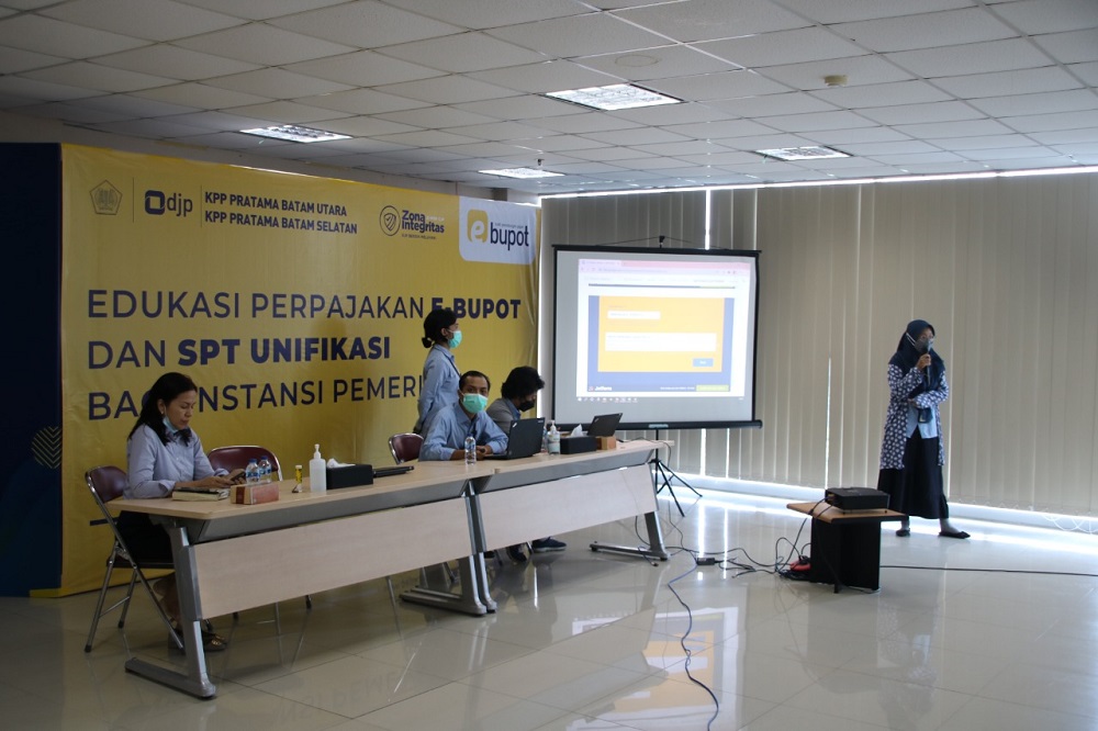 Kantor Pelayanan Pajak (KPP) Pratama Batam Selatan menyelenggarakan kegiatan edukasi perpajakan tentang e-Bupot dan Surat Pemberitahuan (SPT) Unifikasi Instansi Pemerintah di aula KPP Pratama Batam Selatan, Batam, Kepulauan Riau (Rabu, 3/11).
