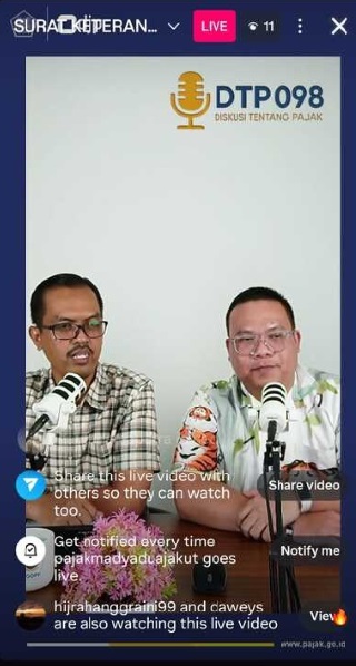Kantor Pelayanan Pajak (KPP) Madya Dua Jakarta Utara kembali menggelar siaran langsung melalui Instagram Live dengan mengangkat topik yang sangat relevan bagi wajib pajak, yaitu surat keterangan fiskal (SKF) (Selasa, 12/8).