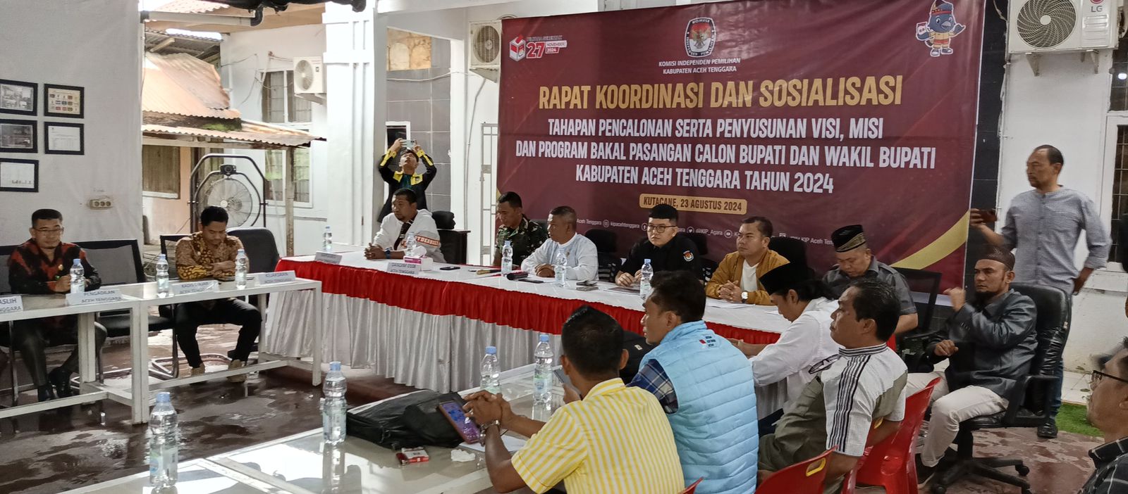 Rapat koordinasi ini dilaksanakan dalam rangka persiapan pelaksanaan tahapan Pencalonan Pemilihan Bupati dan Wakil Bupati Aceh Tenggara Tahun 2024 yang dihadiri Kabapas Aceh Tenggara, Kepala KP2KP Kutacane, Kapolres Aceh Tenggara, Kepala Capdin Aceh Tenggara, Kepala Dukcapil Aceh Tenggara serta Kepala Instansi terkait lainnya. Kehadiran KP2KP Kutacane ditujukan untuk memberikan konsultasi seputar persyaratan perpajakan yang harus dipenuhi calon kepala daerah saat pendaftaran pada tanggal 27 s.d. 29 Agustus 2024.