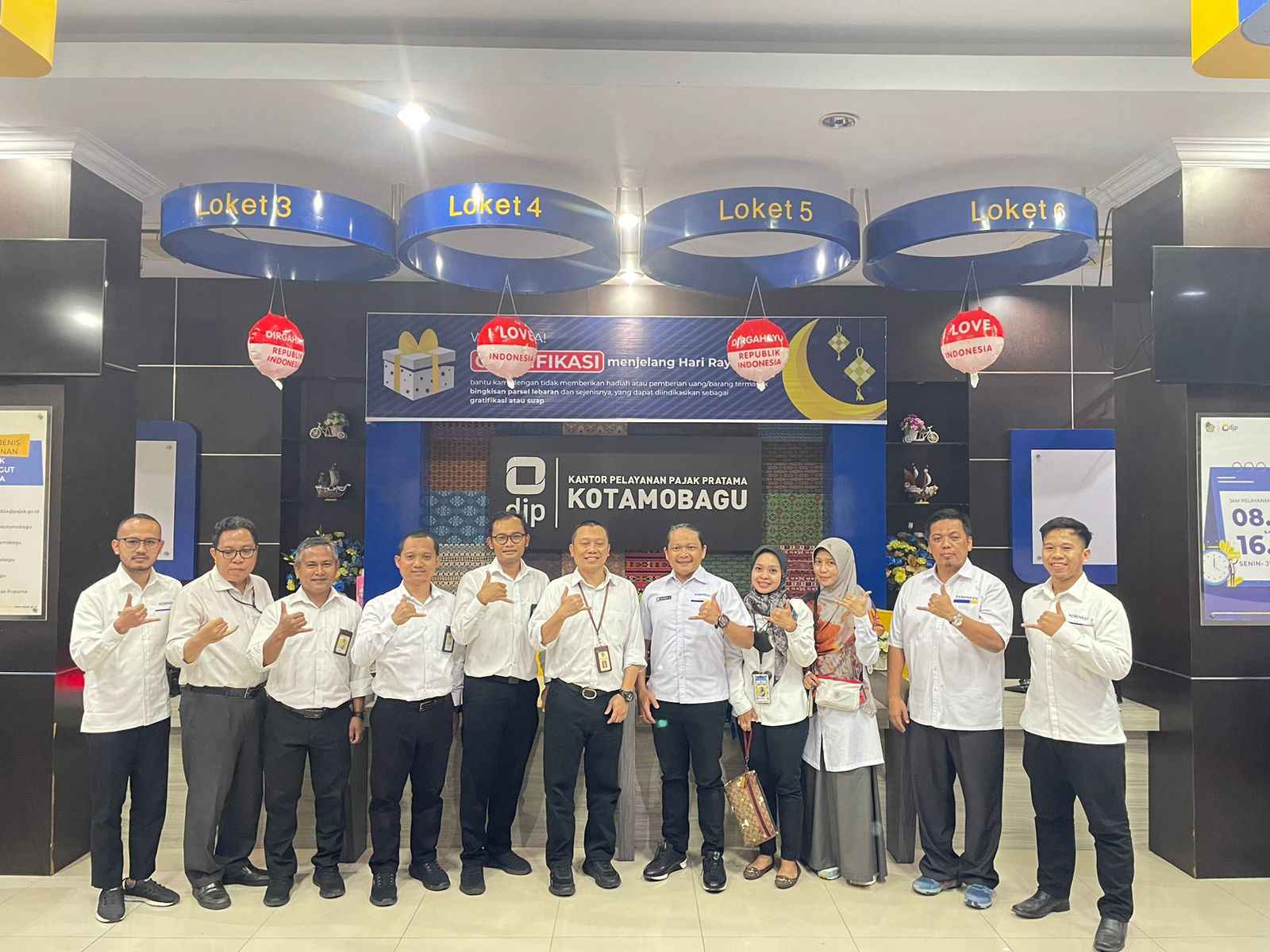 Kantor Pelayanan Pajak (KPP) Pratama Palu melakukan kunjungan kerja dalam rangka studi banding ke KPP Pratama Kotamobagu, Jalan Paloko Kinalang Kotamobagu Timur, Kotamobagu, Sulawesi Utara (Senin, 7/8). Kegiatan ini dilakukan sebagai bagian dari pencanangan Pembangunan Zona Integritas menuju Wilayah Birokrasi Bersih dan Melayani (ZI-WBBM). Kepala KPP Pratama Palu Bangun Nur Cahya Kurniawan dan tim disambut baik oleh Kepala KPP Pratama Kotamobagu Syamsuria.