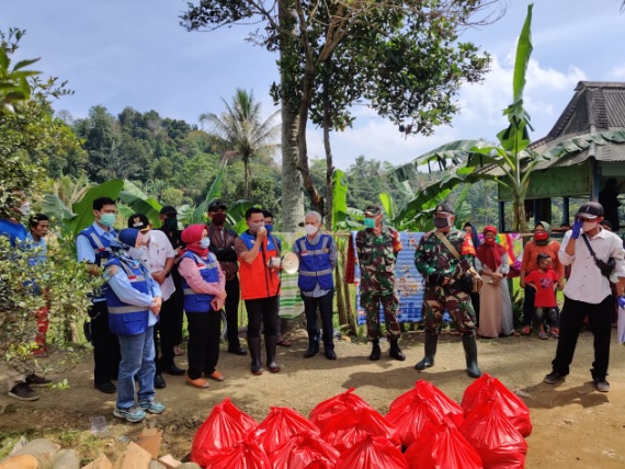 Kepala KPP Pratama Ciawi Donna Dian Sukma bersama Komandan Koramil Leuwisadeng dan Kepala Seksi Pemerintahan Kecamatan Leuwisadeng turut serta menyalurkan bantuan setelah melewati medan yang cukup jauh dan terjal. Donna menyampaikan kepada warga semoga bantuan yang diberikan dapat membantu, apalagi di masa pandemi ini sehingga kebutuhan pokok dapat terpenuhi.