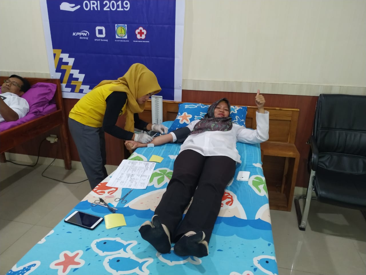 Masih dalam rangka peringatan Hari Oeang ke-73, Kantor Pelayanan, Penyuluhan, dan Konsultasi Perpajakan (KP2KP) Benteng dan Kantor Pelayanan Perbendaharaan Negara (KPPN) Benteng mengadakan kegiatan donor darah (Senin, 14/10). Kegiatan yang didukung oleh Palang Merah Indonesia (PMI) ini, berlangsung di Aula KPPN.