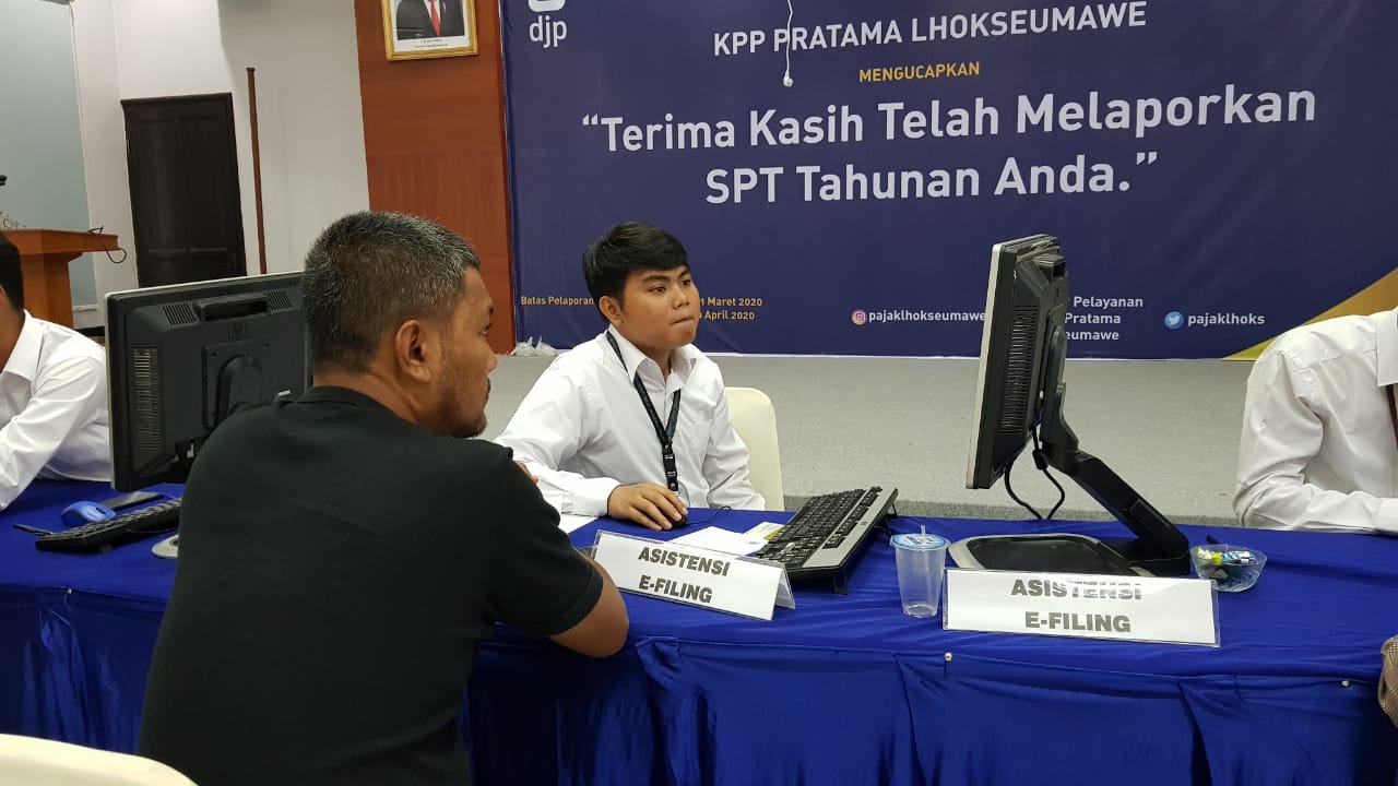 KPP Pratama Lhokseumawe menyediakan layanan e-Filing di Aula Lantai 3 KPP Pratama Lhokseumawe (Senin, 24/2). Layanan e-Filing ini berupa pemberian nomor EFIN, lupa password e-Filing, serta layanan pendampingan pengisian e-Filing.