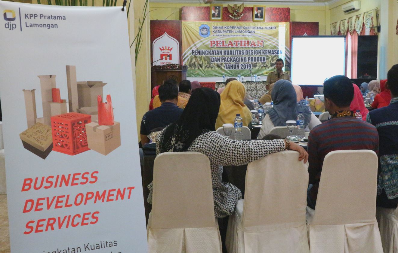 KPP Pratama Lamongan bertempat di Mahkota Hotel, Jalan Sunan Drajat, Lamongan melaksanakan Business Develoment Services (BDS) (Senin, 8/7). Kesempatan kali ini menggandeng Usaha Kecil Mikro (UKM) binaan Dinas Koprasi dan Usaha Mikro Kabupaten Lamongan dengan mengambil tema “Peningkatan Kualitas Desain Kemasan dan Packaging Produk”.