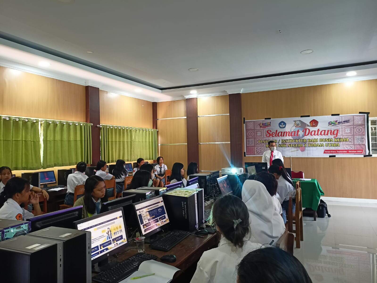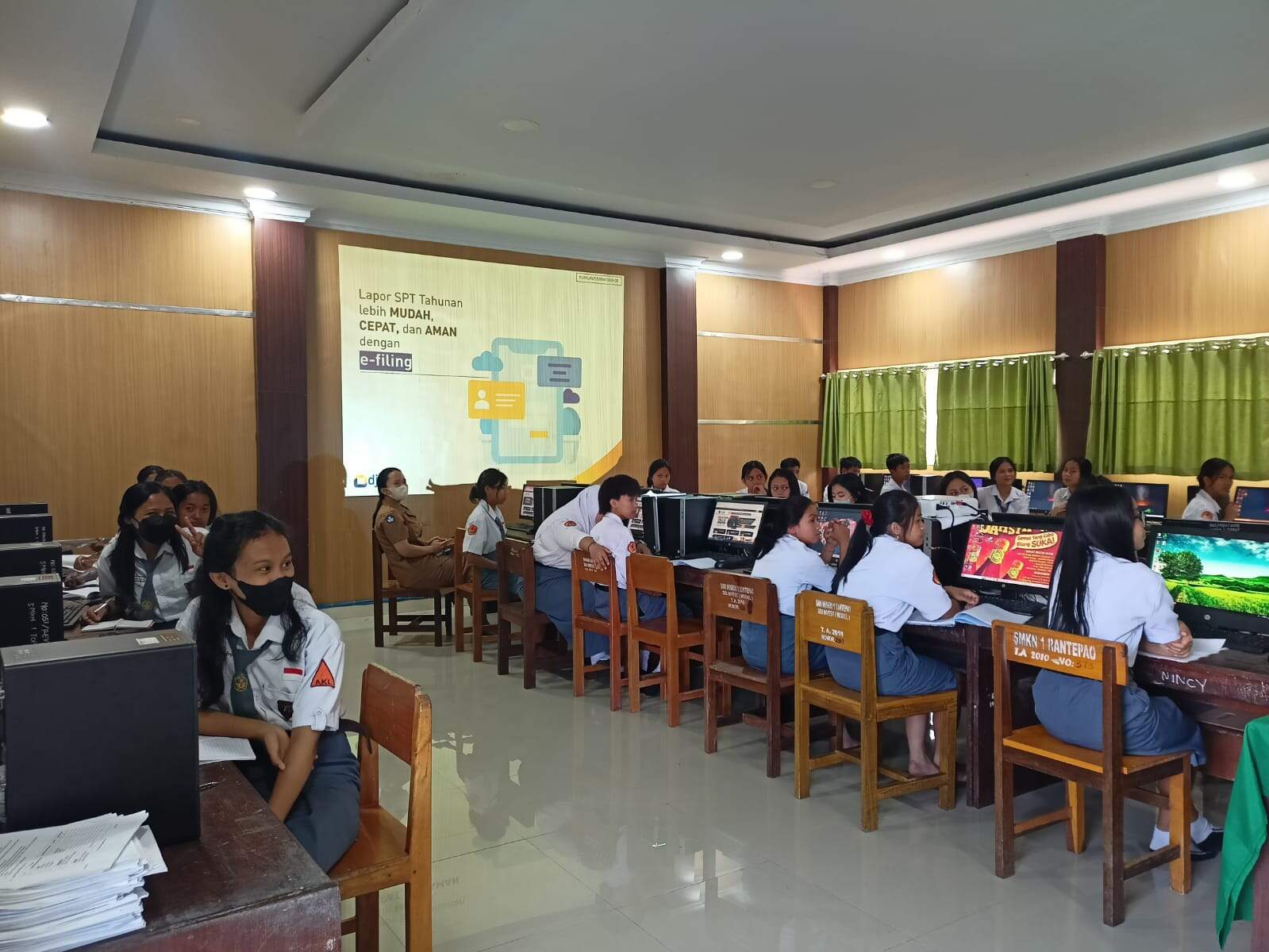 Kantor Pelayanan, Penyuluhan, dan Konsultasi Perpajakan (KP2KP) Makale menjadi narasumber dalam kegiatan guru tamu yang diselenggarakan oleh SMKN 1 Toraja Utara (Senin, 24/10). Kegiatan yang digelar di ruang laboratorium SMKN 1 Toraja Utara ini dilaksanakan dalam rangka Program Direktorat Jenderal Pendidikan Vokasi, Kementerian Pendidikan Kebudayaan Riset dan Teknologi tentang SMK Pusat Keunggulan tahun 2022.