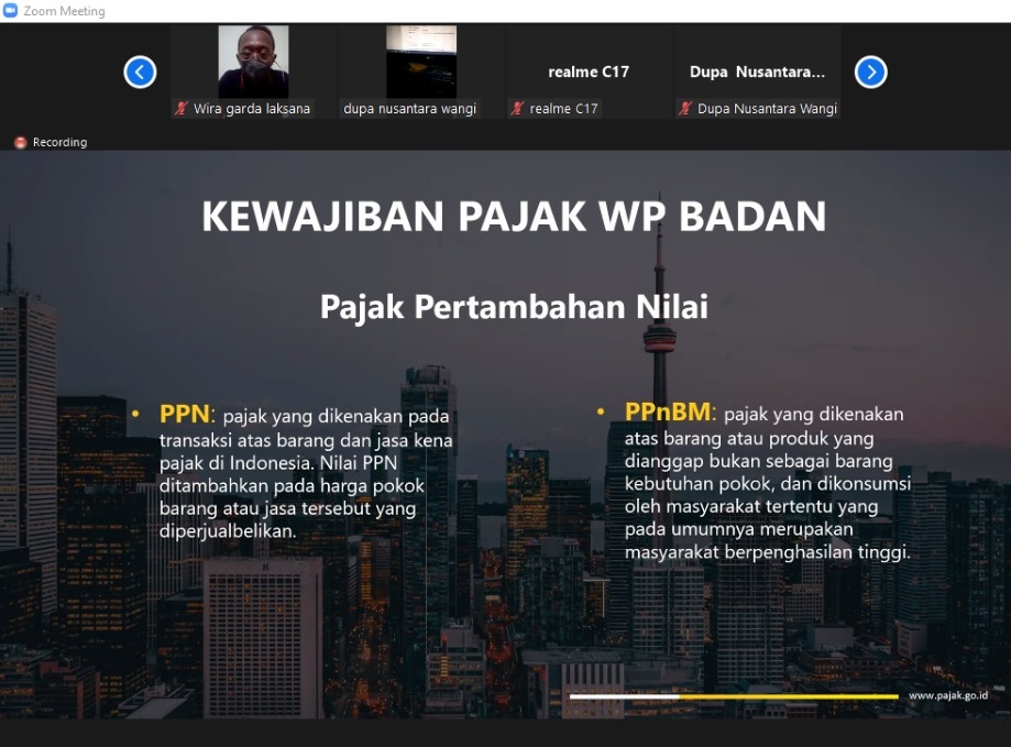 Tim Penyuluh Pajak Kantor Wilayah (Kanwil) DJP Jawa Timur II bersama Tim Penyuluh Pajak Kantor Pelayanan Pajak (KPP) Pratama Mojokerto menyelenggarakan edukasi perpajakan bagi wajib pajak strategis yang belum menyampaikan Surat Pemberitahuan (SPT) Tahunan. Acara dilangsungkan secara daring di KPP Pratama Mojokerto, Kabupaten Mojokerto mulai pukul 13.00 sampai 14.30 WIB (Senin, 13/9).