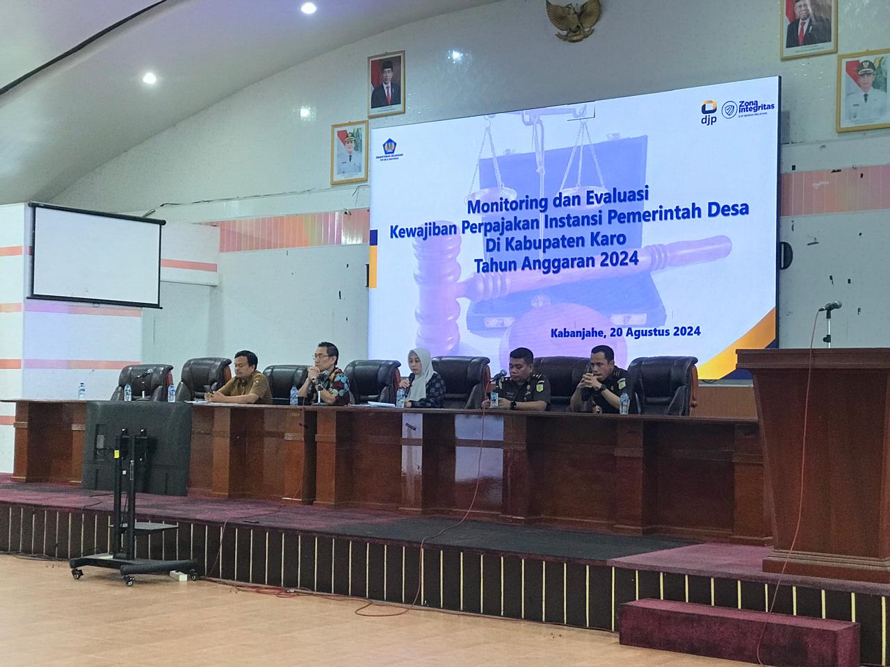 Kantor Pelayanan Pajak (KPP) Pratama Kabanjahe melaksanakan sosialisasi dan evaluasi pemenuhan kewajiban perpajakan instansi pemerintah desa yang dilaksanakan di Aula Kantor Bupati Kabupaten Karo (Selasa, 20/8).