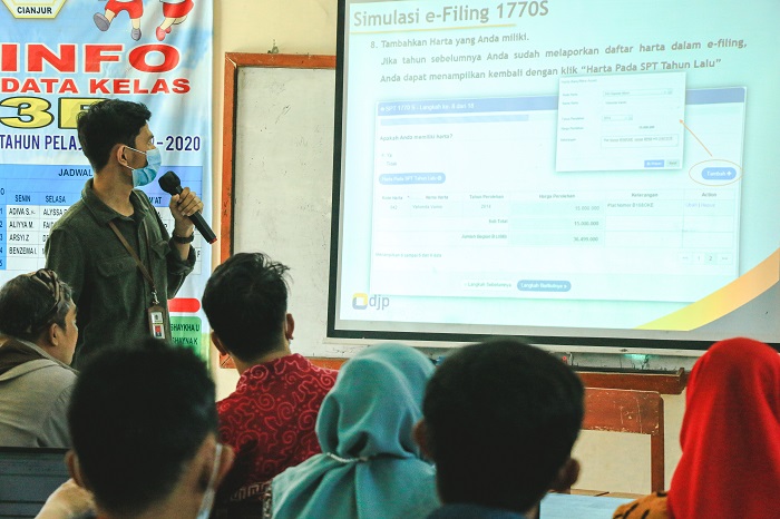 Selain itu, Asisten Penyuluh Pajak KPP Pratama Cianjur Budi Melky Kuslouwrent juga memberikan penjelasan terkait pengisian pelaporan SPT Tahunan Pajak Penghasilan (e-Filing) kepada seluruh peserta sosialisasi.