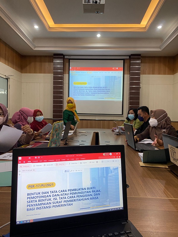Dinas Perindustrian dan Perdagangan (Disperindag) Provinsi Jawa Tengah mengundang Kantor Pelayanan Pajak (KPP) Pratama Semarang Selatan untuk memberikan bimbingan teknis (bimtek) pengimplementasian aplikasi Bukti Pemotongan dan Pemungutan Elektronik (e-Bupot) Unifikasi bagi bendahara pemerintah. Acara berlangsung secara luring di Ruang Rapat Kantor Disperindag Provinsi Jawa Tengah, Semarang (Kamis, 9/12).