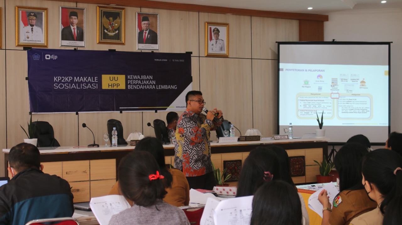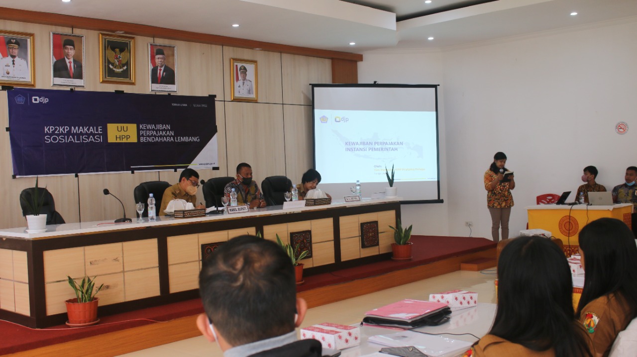 Kantor Pelayanan, Penyuluhan, dan Konsultasi Perpajakan (KP2KP) Makale bersama Dinas Pemberdayaan Masyarakat Lembang (DPML) Kabupaten Toraja Utara mengadakan kegiatan edukasi perpajakan kepada Bendahara Desa di Kabupaten Toraja Utara. Acara ini diselenggarakan di Ruang Pola Kantor Bupati Kabupaten Toraja Utara, Merante Tondon (Selasa, 12/7).