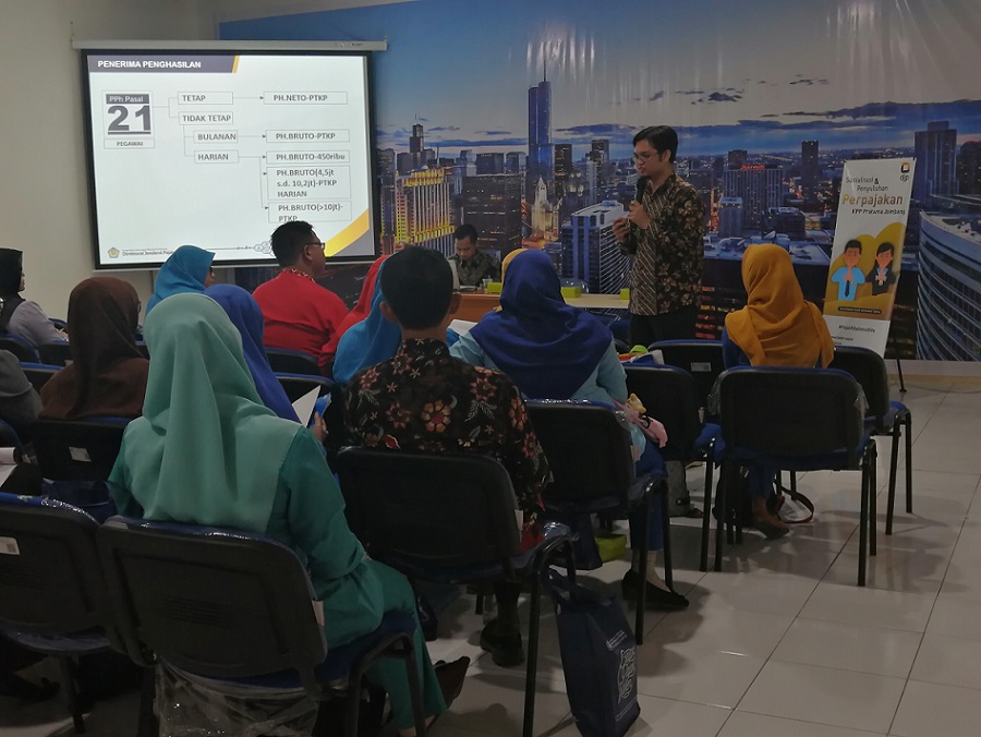 Sebayak 20 bendahara dari semua rumah sakit dan klinik yang berada di wilayah Kabupaten Jombang mengikuti acara Bimbingan Teknis Tata Cara Pemotongan Pajak Penghasilan (PPh) Pasal 21 bagi Dokter yang terselenggara di Aula Kantor Pelayanan Pajak (KPP) Pratama Jombang (Selasa, 28/1). Mereka hadir berdasarkan undangan resmi dari KPP Pratama Jombang yang dikirim melalui pos dan WhatsApp sekitar seminggu sebelum acara berlangsung.
