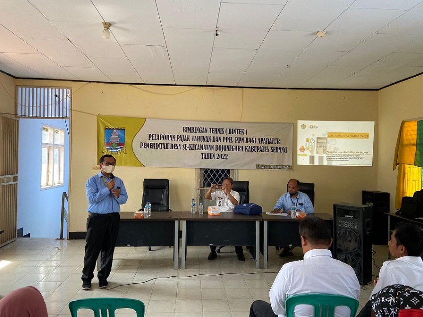 Kantor Pelayanan Pajak (KPP) Pratama Serang Timur mendapatkan undangan untuk menjadi narasumber kegiatan bimbingan teknis  e-Bupot Unifikasi di Kecamatan Bojonegara, Kabupaten Serang (Rabu, 10/8).