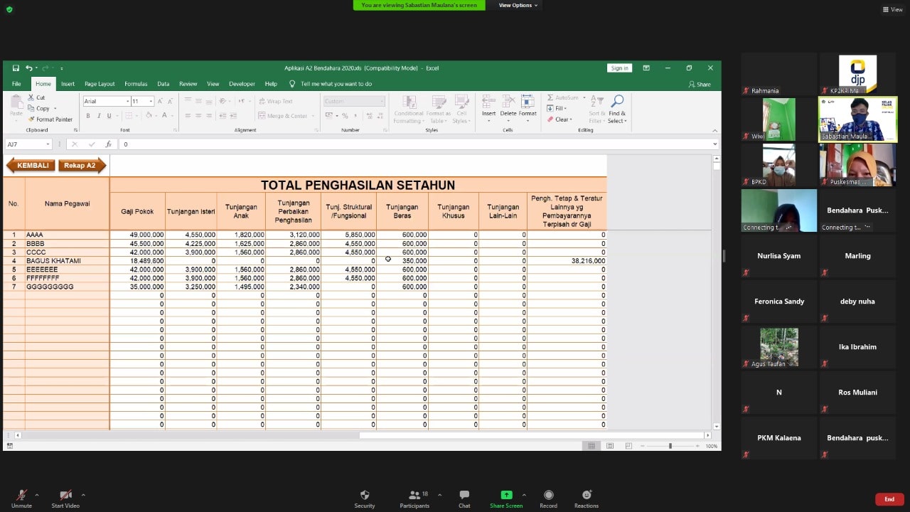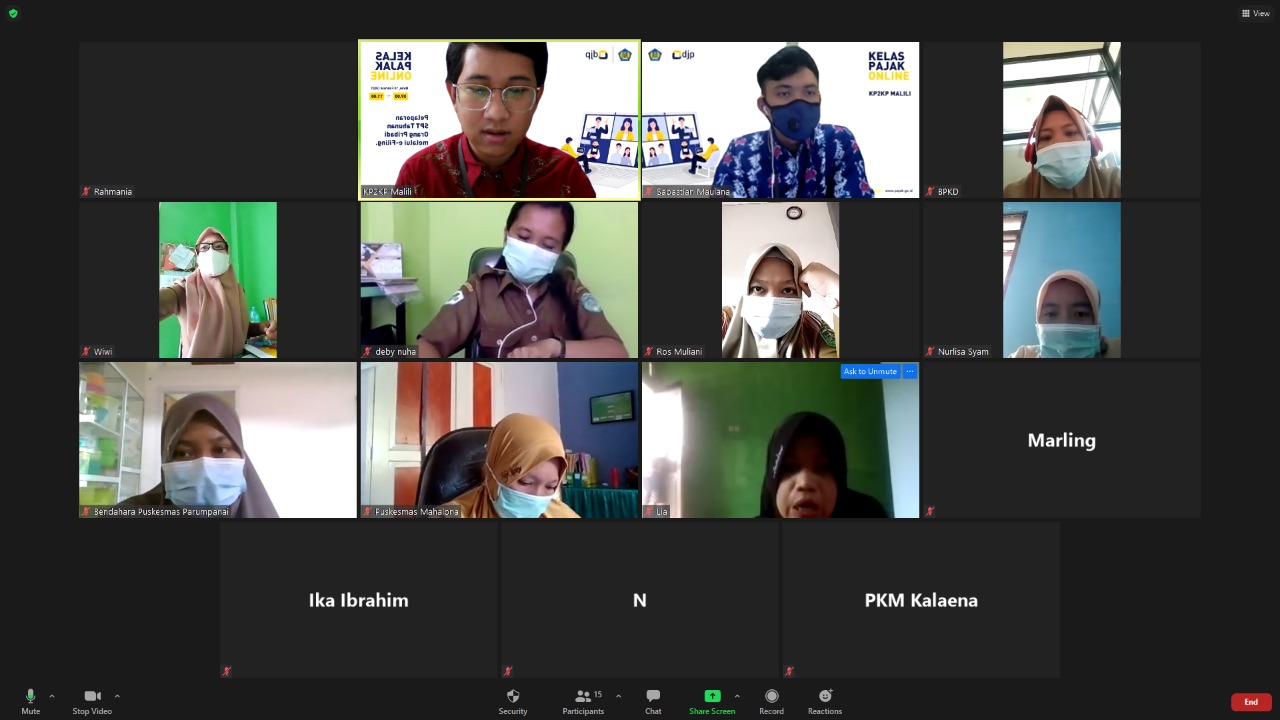 Kantor Pelayanan, Penyuluhan, dan Konsultasi Perpajakan (KP2KP) Malili mengadakan kegiatan Bimbingan Teknis pembuatan bukti potong A2 pada bendaharawan puskesmas (Selasa, 23/2). Kegiatan ini dilangsungkan secara daring melalui aplikasi Zoom Meeting di ruang rapat KP2KP Malili, Kabupaten Luwu Timur.