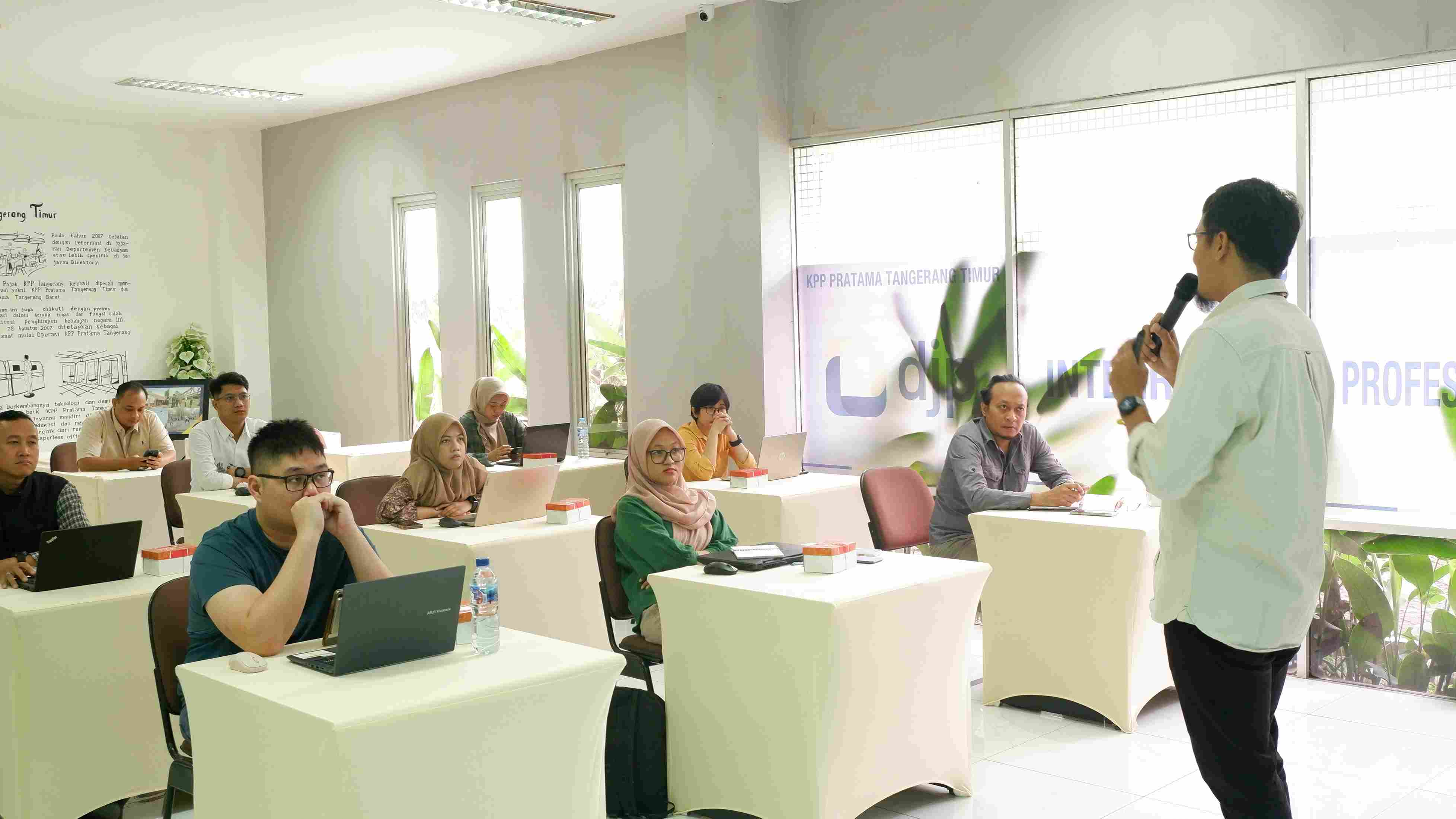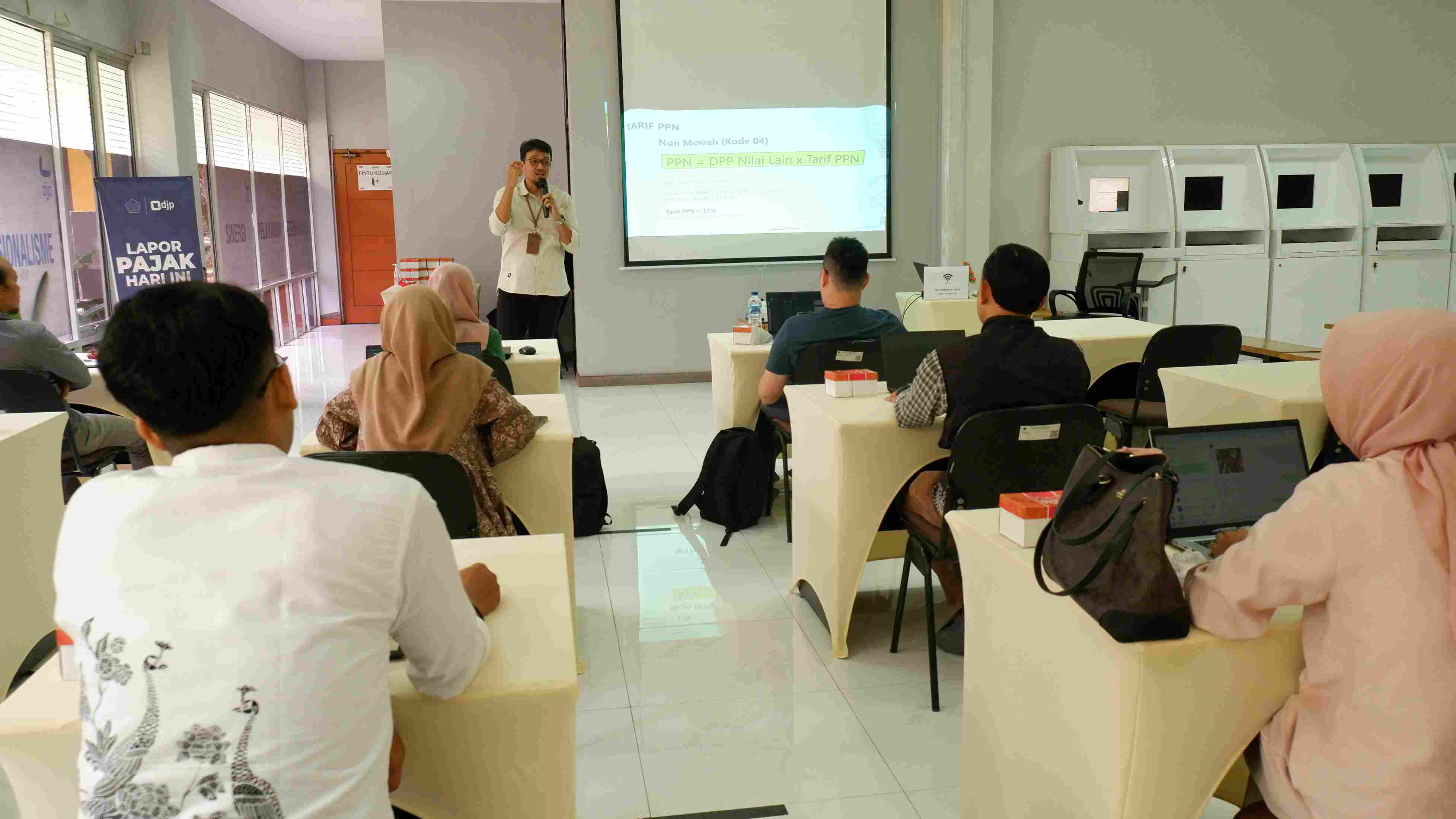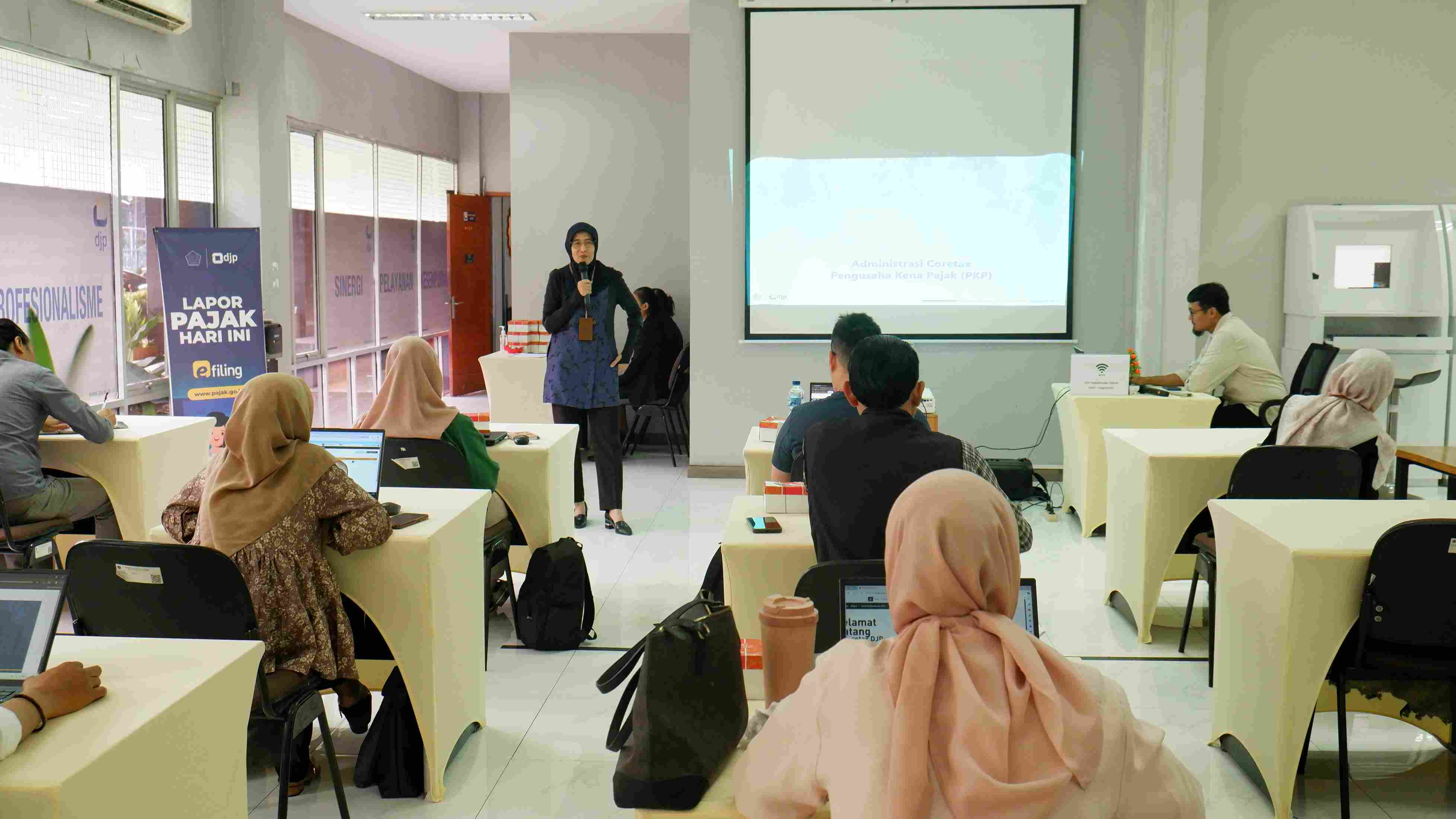 Kantor Pelayanan Pajak (KPP) Pratama Tangerang Timur menyelenggarakan Kelas Pajak terbuka untuk Wajib Pajak Badan di Ruang Layanan Mandiri, KPP Pratama Tangerang Timur, Tangerang, Banten (Kamis, 15/5). Dengan tema “Meningkatkan Pengetahuan dan Keterampilan Wajib Pajak”, materi yang dibawakan terkait Pendaftaran Pengukuhan Pengusaha Kena Pajak (PKP) melalui Coretax DJP.