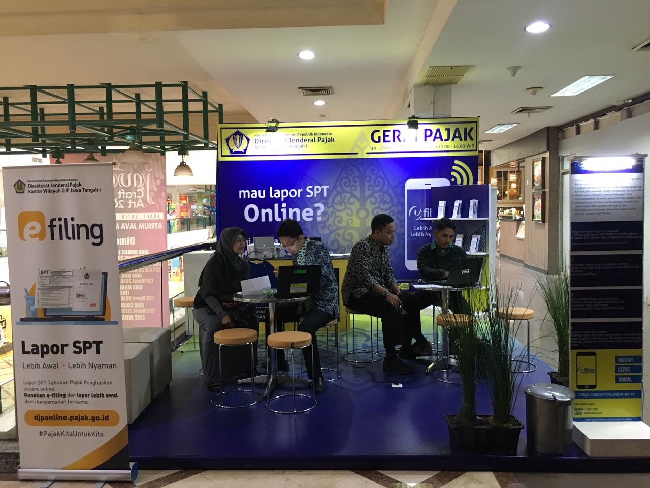 Gerai Pajak Kanwil DJP Jawa Tengah I dibuka selama 12 hari menjelang batas akhir penyampaian SPT Tahunan PPh Wajib Pajak (WP) Orang Pribadi yang akan berakhir pada 31 Maret 2018. Selain memberikan layanan pendampingan Pelaporan SPT Tahunan PPh WP Orang Pribadi melalui eFiling, Gerai Pajak juga memberikan layanan Aktivasi dan Cetak Ulang eFIN (Electronic Filling Identification Number) serta Konsultasi Perpajakan secara umum.