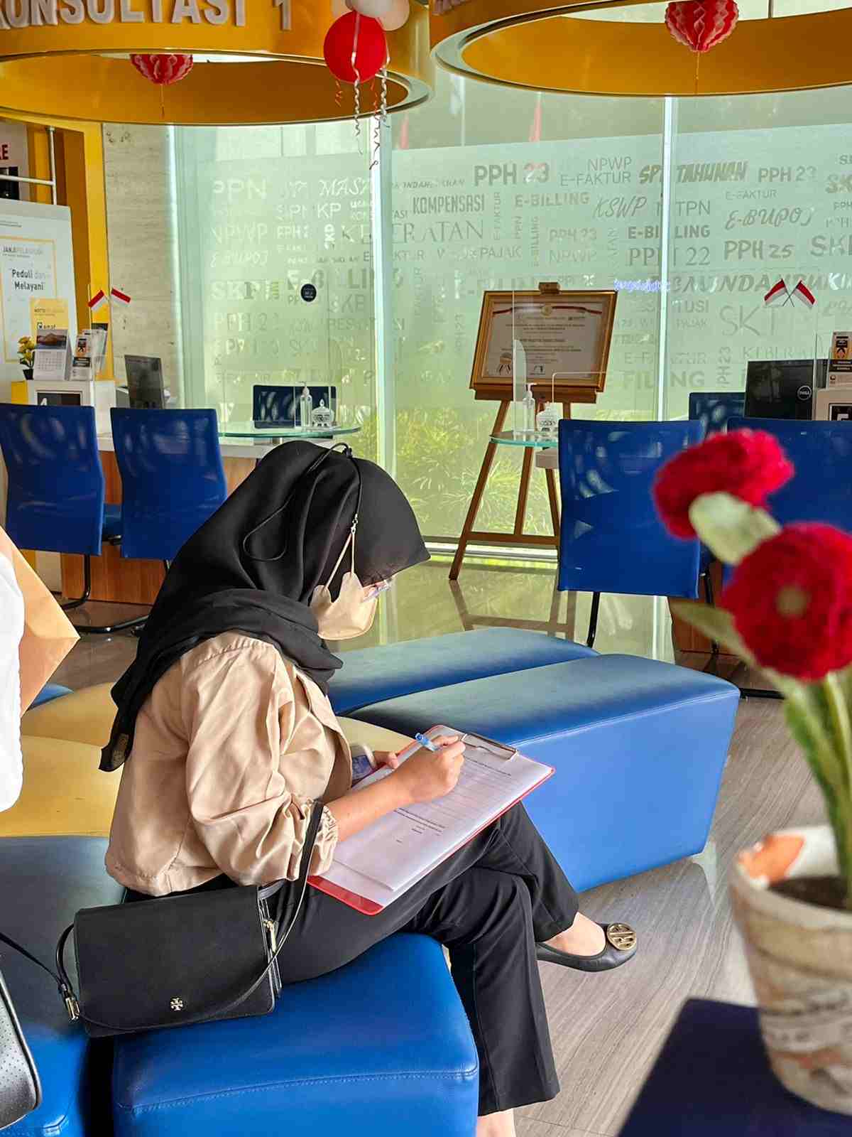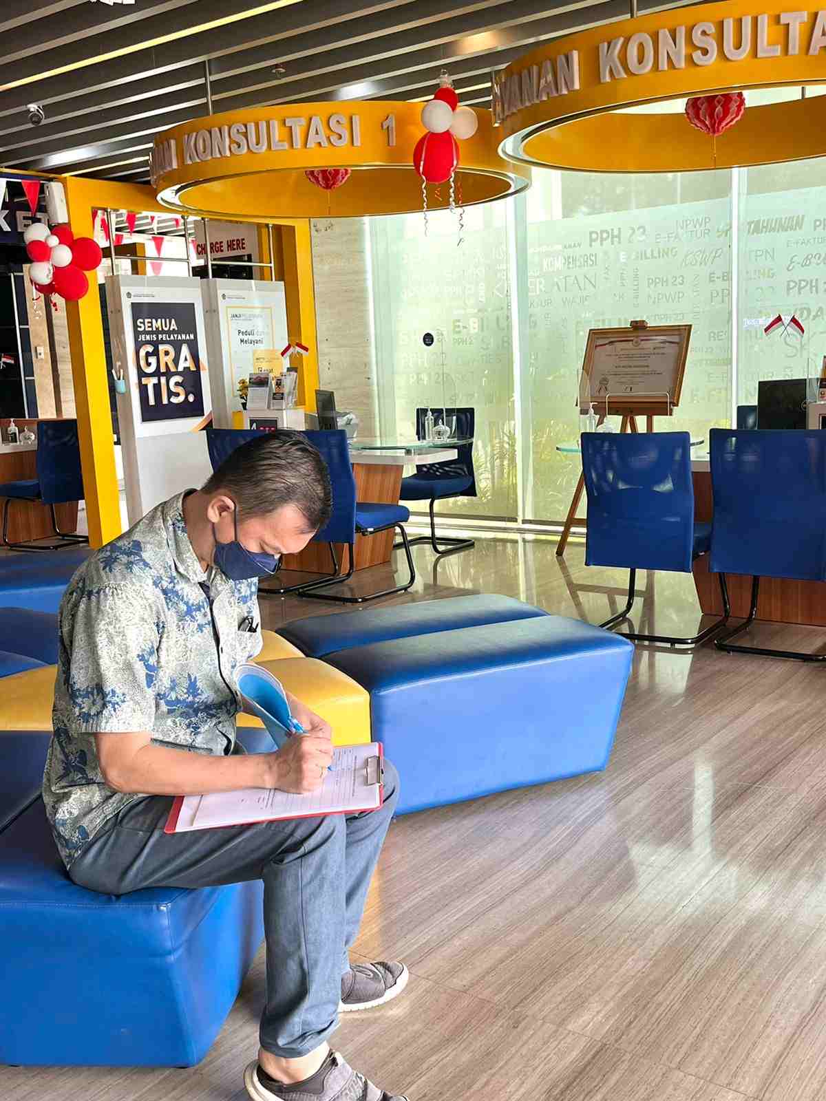 Wajib pajak mengunjungi Account Representative Kantor Pelayanan Pajak (KPP) Madya Tangerang untuk memberikan tanggapan atas surat yang dilayangkan dari KPP Madya Tangerang, Kota Tangerang (Senin, 5/9).