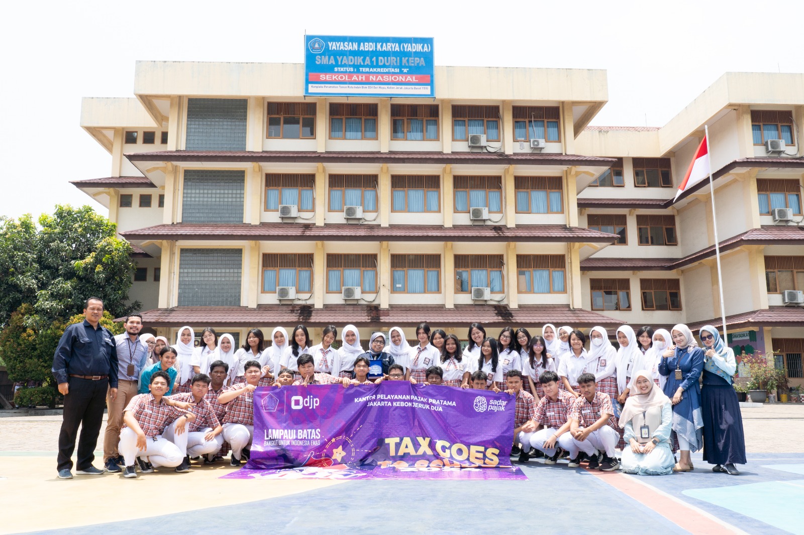 Kantor Pelayanan Pajak (KPP) Pratama Jakarta Kebon Jeruk Dua menyelenggarakan Tax Goes to School (TGTS) di Ruang Kelas Sekolah Menengah Atas (SMA) Yadika 1 Duri Kepa, Duri Kepa, Jakarta Barat (Selasa, 22/10). Kegiatan TGTS merupakan rangkaian kegiatan Direktorat Jenderal Pajak (DJP) dalam memberikan sosialisasi dan perkenalan pajak ke lingkungan masyarakat yang lebih lebih dini, yakni tingkat pendidikan atau bangku sekolah.