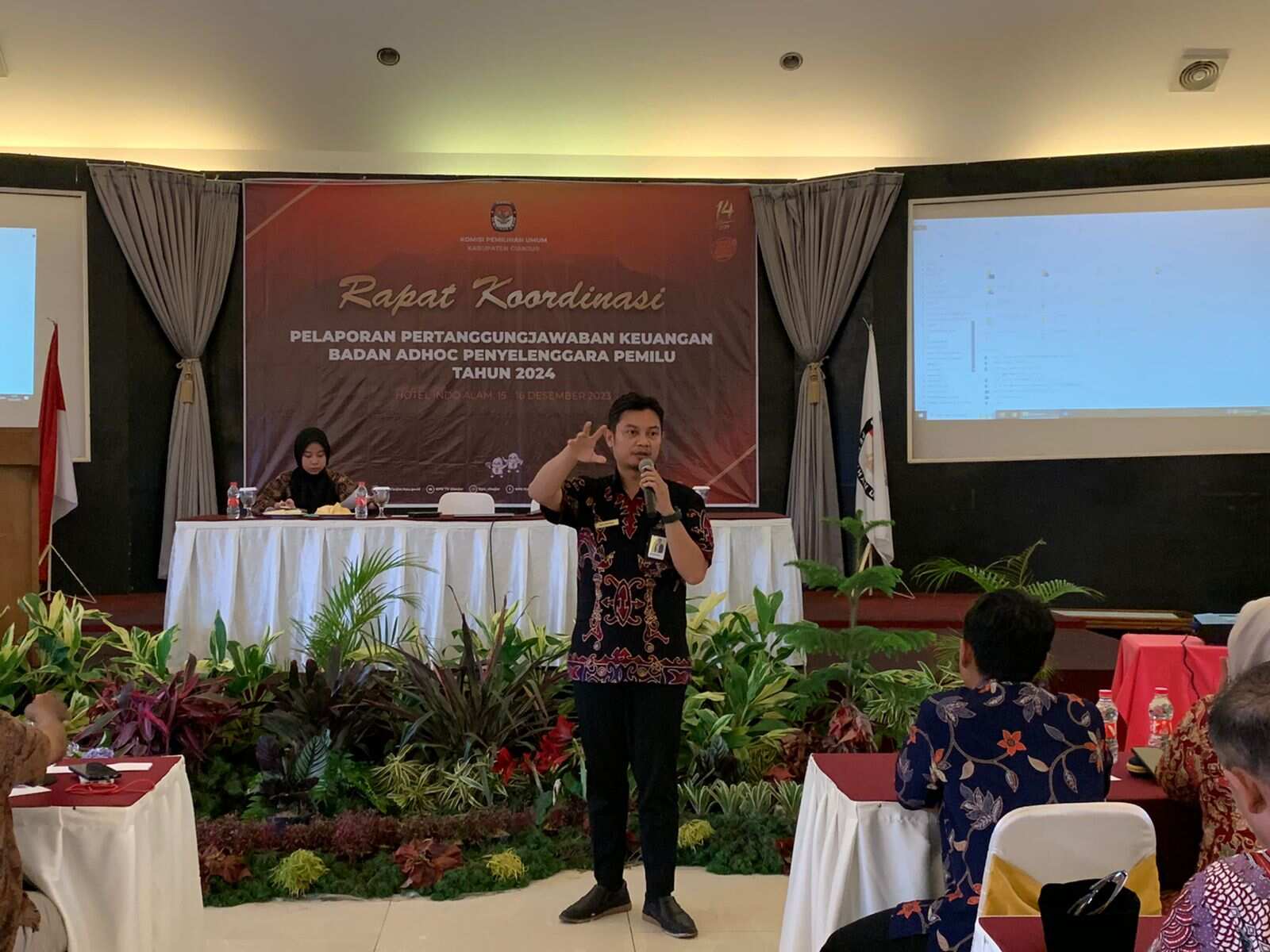 Kantor Pelayanan Pajak (KPP) Pratama Cianjur membahas aspek pajak instansi pemerintah di acara Petunjuk Teknis Penyaluran dan Pertanggungjawaaban Penggunaan Dana Tahapan Pemilihan Umum Bagi Badan Adhoc Penyelenggara Pememilihan Umum yang diadakan oleh Komisi Pemilihan Umum (KPU) Kabupaten Cianjur di Aula Hotel Indo Alam, Kecamatan Cipanas, Kabupaten Cianjur (Jumat, 15/12).