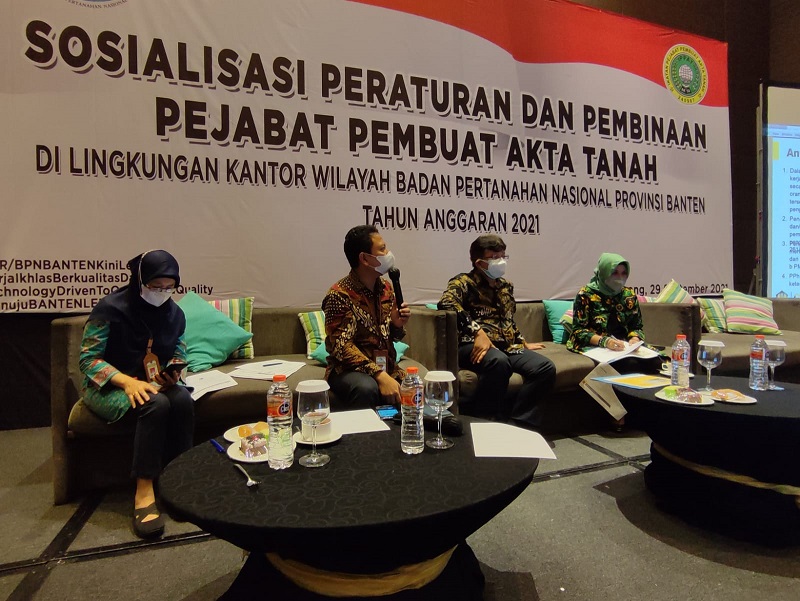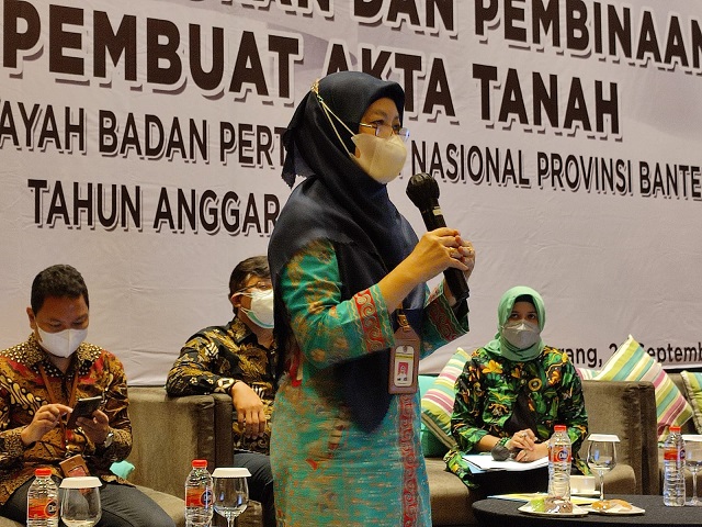 Fungsional Penyuluh Kantor Wilayah Direktorat Jenderal Pajak (Kanwil DJP) Banten dan Kepala Seksi Pelayanan KPP Pratama Tangerang Timur Fitri Dwi Astuti menjadi narasumber kegiatan Sosialisasi Peraturan dan Pembinaan Pejabat Pembuat Akta Tanah (PPAT) secara daring dan luring di Aula Hotel Novotel di Kota Tangerang (Rabu, 29/9).