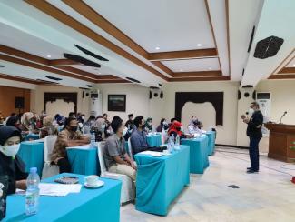 F.G. Sri Suratno, selaku narasumber dari Kanwil DJP Jatim II menyampaikan materi dengan judul Perlakuan Perpajakan dan Fasilitas Perpajakan bagi UKM kepada 60 peserta yang hadir.