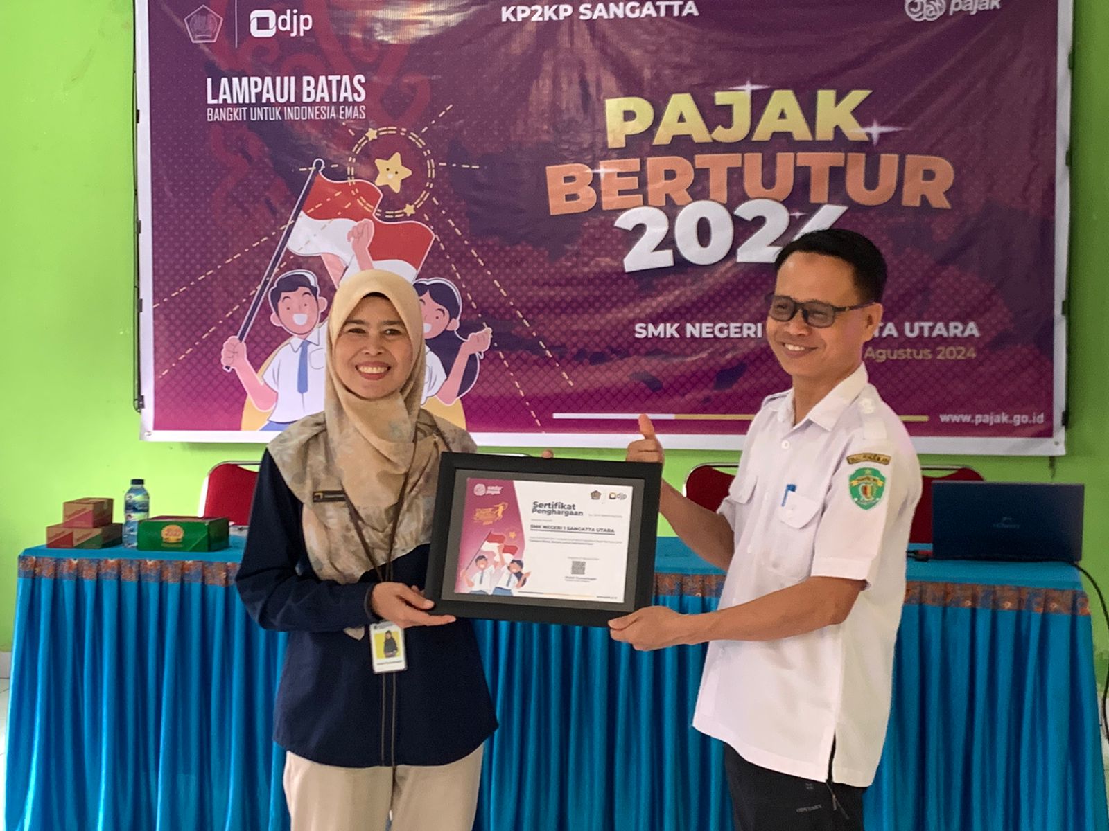 KP2KP Sangatta diwakili oleh Endah Purwaningsih, Yayang Putra, Veronika Advenia, Sandi Dwi, dan Reyhan Yunus menyelenggarakan Patur 2024 dengan tema “Lampaui Batas, Bangkit Untuk Indonesia Emas”. Endah Purwaningsih selaku Kepala KP2KP Sangatta memaparkan materi pengenalan dan peran perpajakan dalam membangun bangsa. Pajak dianalogikan sebagai uang masuk bagi dompet negara, yakni Anggaran Pendapatan dan Belanja Negara (APBN) untuk menghidupi seluruh kebutuhan negara di antaranya, pembangunan infrastruktur, kesehatan, pertahanan negara, pertanian, pendidikan, dan masih banyak lagi lainnya.