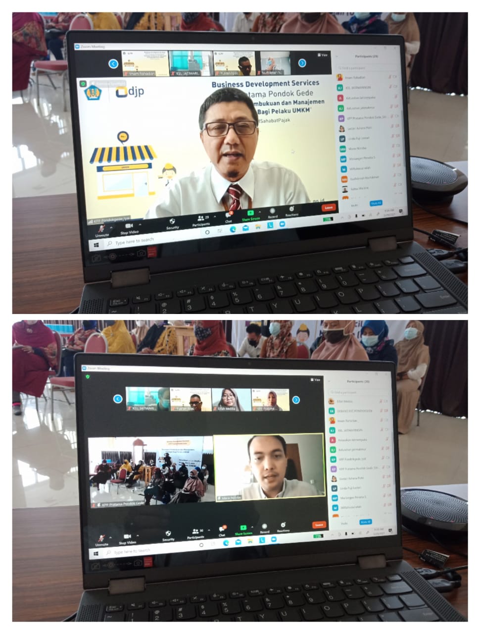 Selain peserta yang ikut secara daring, KPP Pratama Pondok Gede juga mengundang sebanyak 15 anggota perwakilan UMKM di Kecamatan Pondok Melati untuk hadir langsung di Aula KPP Pratama Pondok Gede. Undangan ini hanya diberikan secara terbatas demi menghindarkan penyebaran Virus Covid-19.