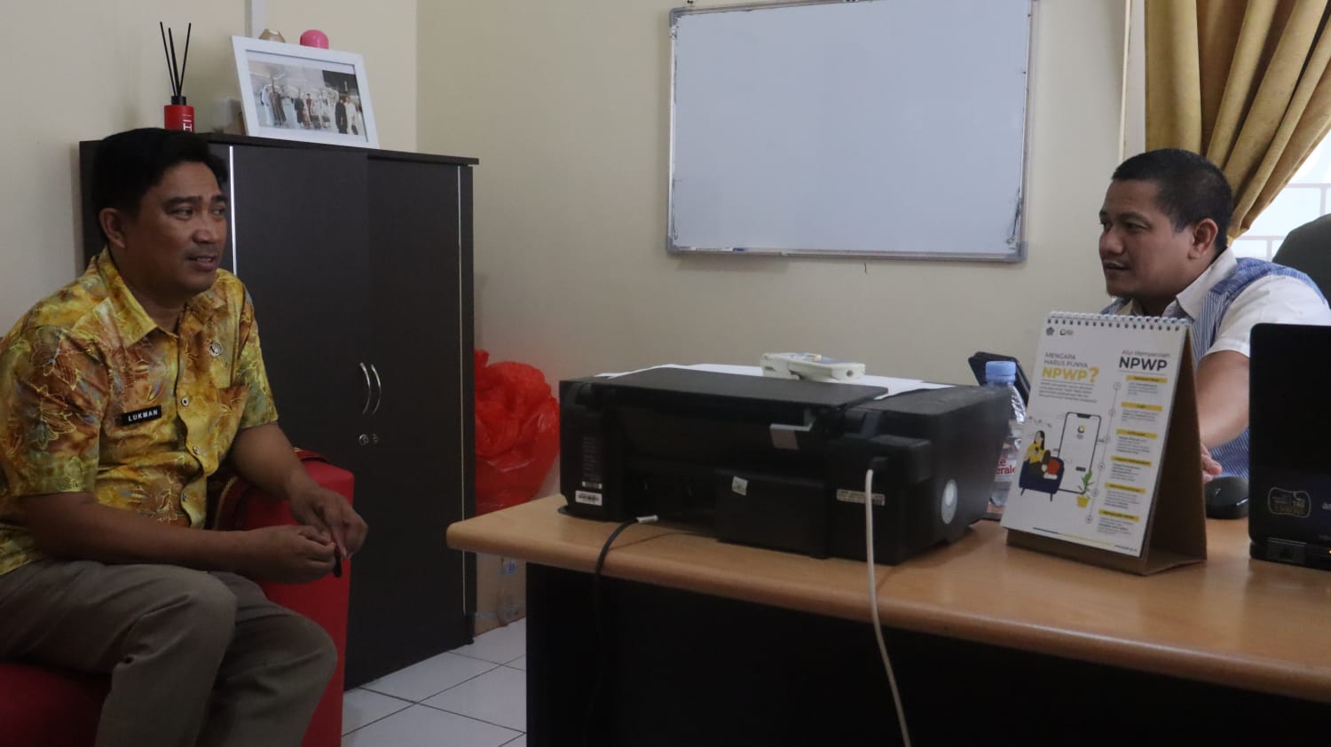 Kunjungan Lukman Kepala Sub Bidang Penetapan dan Penagihan Pajak BPKPD Kabupaten Pinrang diterima secara langsung dengan ramah dan bersahabat oleh Akhmad Reiza Kepala Kantor Pajak Pinrang.
