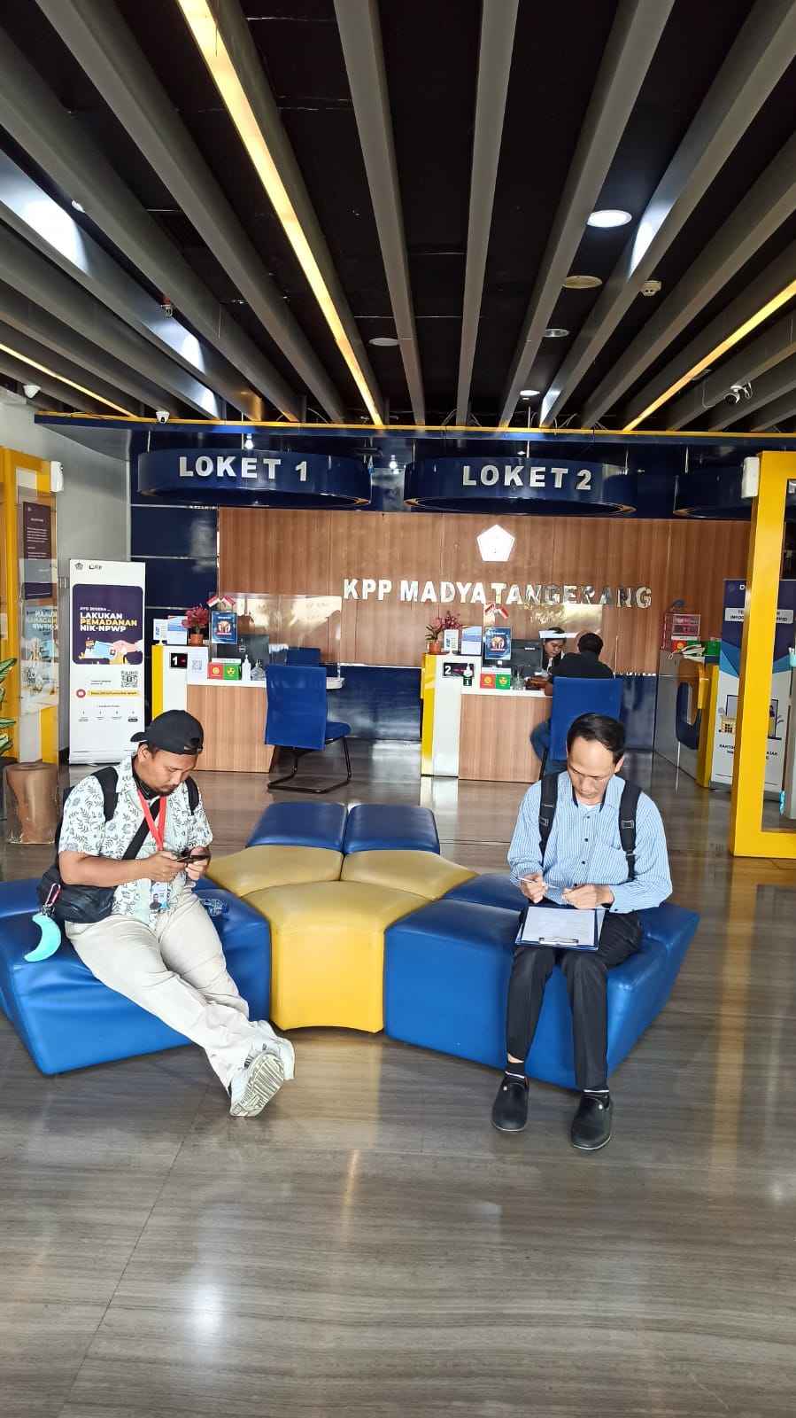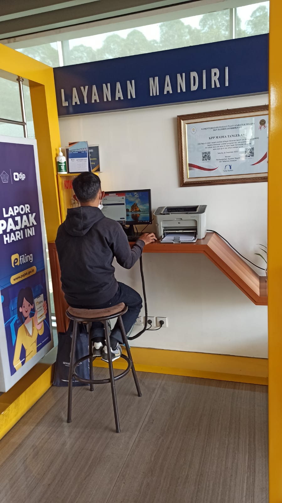 Wajib pajak mendatangi loket mandiri Kantor Pelayanan Pajak (KPP) Madya Tangerang untuk membuat kode billing di Gedung Menara Top Food, Alam Sutera, Jalan Jalur Sutera Barat No.3, RT.003/RW.006, Panunggangan Timur, Pinang, Kota Tangerang, Banten (Senin, 25/9).