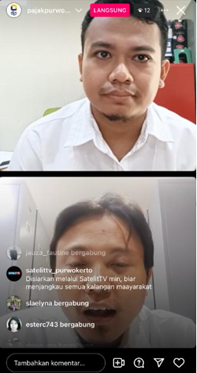 Kantor Pelayanan Pajak (KPP) Pratama Purwokerto kembali menyapa dan mengedukasi masyarakat melalui siaran langsung (live) Instagram, di ruang Seksi Pelayanan KPP Pratama Purwokerto, Kecamatan Purwokerto Timur, Banyumas (Senin, 18/3).