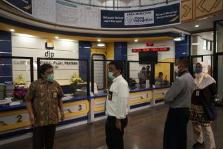 Kepala Bidang Penyuluhan, Pelayanan, dan Hubungan Masyarakat Kantor Wilayah (Kanwil) DJP Kalimantan Barat Vadri Usman meninjau sarana prasarana persiapan layanan tatap muka yang dilakukan di Tempat Pelayanan Terpadu (TPT) pada Kantor Pelayanan Pajak (KPP) Pratama Pontianak Timur, KPP Pratama Pontianak Barat dan KPP Pratama Mempawah (Kamis, 11/6).