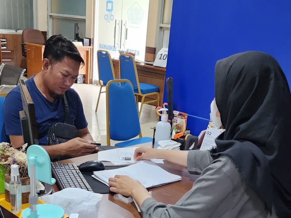 Tim Kantor Pelayanan, Penyuluhan, dan Konsultasi Perpajakan (KP2KP) Sendawar memberikan panduan pelaporan SPT Tahunan Orang Pribadi (OP) di Tempat Pelayanan Terpadu, KP2KP Sendawar, Kel. Barong Tongkok, Kec. Barong Tongkok, Kabupaten Kutai Barat (Jumat, 3/3).