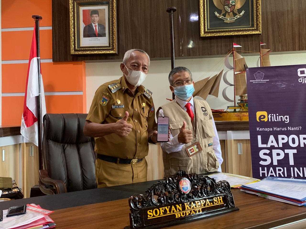 Bupati Kabupaten Banggai Laut Sofyan Kaepa mengajak seluruh masyarakat Kabupaten Banggai Laut untuk lapor Surat Pemberitahuan (SPT) Tahunan 2020. Sofyan sendiri telah melaporkan SPT Tahunan 2020. Dalam pelaporannya, Sofyan Kaepa dipandu oleh Kepala Kantor Pelayanan Pajak Pratama Luwuk, Ruseno Hadi melalui e-Filing di ruang Bupati Kantor Pemerintah Daerah Kabupaten Banggai Laut (Senin, 29/3).