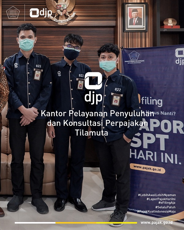 Kantor Pelayanan, Penyuluhan, dan Konsultasi Perpajakan (KP2KP) Tilamuta mengadakan kegiatan Asistensi pelaporan SPT Tahunan secara daring melalui e-Filing kepada Plt. Bupati Boalemo Anas Jusuf di ruangan Kantor Bupati Boalemo, Gorontalo (Kamis, 25/2).