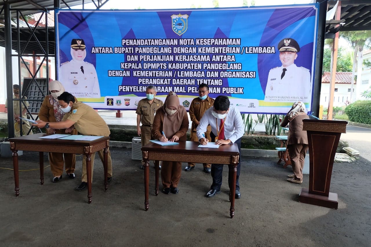 Nota Kesepahaman ini juga ditandatangani perwakilan dari Kementerian/Lembaga lainnya yakni Kementerian Hukum dan HAM Banten, Kepolisian Resort Pandeglang, Kejaksaan Negeri Pandeglang, PT. Taspen cabang Serang, BPJS Ketenagakerjaan cabang Serang, BPJS Kesehatan cabang Serang, Bank BRI cabang Pandeglang, Dinas Perhubungan, Dinas Sosial Kabupaten Pandeglang yang juga ikut berpartisipasi di mal pelayanan publik nantinya.