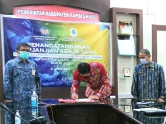 Bupati Kabupaten Kapuas Hulu Fransiskus Diaan menandatangani Perjanjian Kerja Sama (PKS) Optimalisasi Pemungutan Pajak Pusat dan Pajak Daerah antara Direktorat Jenderal Pajak (DJP), Direktorat Jenderal Perimbangan Keuangan (DJPK), dan Pemerintah Daerah (Pemda) tahun 2021, Kapuas Hulu (Rabu, 21/4). Berlangsung di ruang rapat Bupati Kapuas Hulu, kegiatan ini turut disaksikan oleh Kepala Bidang Pelayanan Penyuluhan dan Hubungan Masyarakat (P2Humas) Kanwil DJP Kalimantan Barat Vadri Usman serta beberapa jajaran Pemerintah Daerah Kabupaten Kapuas Hulu.