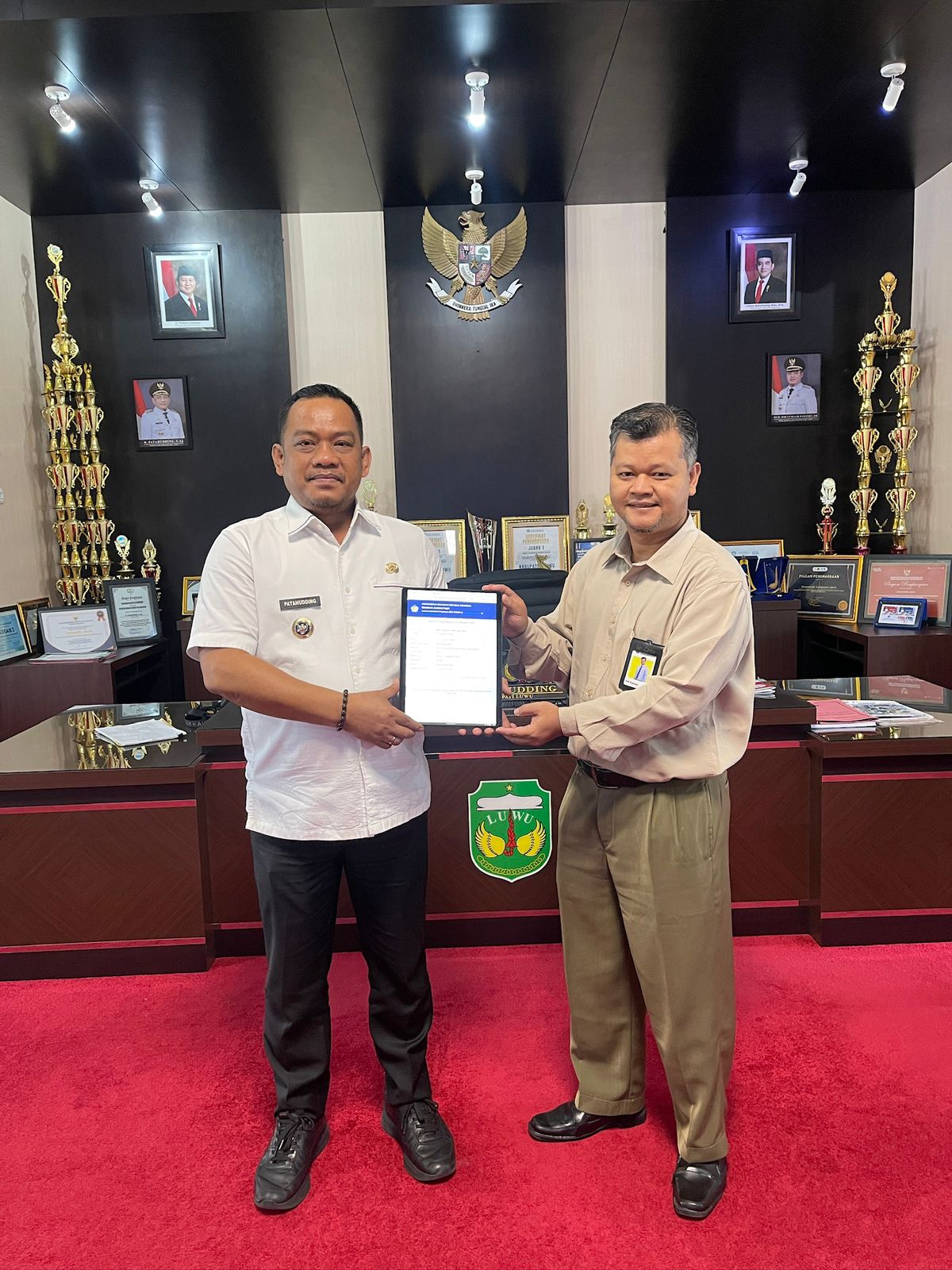 Bupati Patahudding menerima kunjungan audiensi dari jajaran Kantor Pelayanan Pajak (KPP) Pratama Palopo di Kantor Bupati Luwu, Kabupaten Luwu (Kamis, 19/2). Pertemuan ini bertujuan memperkuat koordinasi antara Pemerintah Kabupaten Luwu dan Direktorat Jenderal Pajak (DJP) dalam rangka mendukung pelaporan Surat Pemberitahuan (SPT) Tahunan Tahun Pajak 2025.
