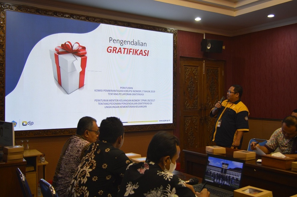 Kantor Pelayanan Pajak (KPP) Pratama Blora melakukan sosialisasi pengendalian gratifikasi ke pihak eksternal di Sekretariat Daerah Kabupaten Blora (Kamis,16/2). Kegiatan Sosialisas disampaikan oleh Unit Pengendali Gratifikasi (UPG) KPP Pratama Blora Minachurrozaq.