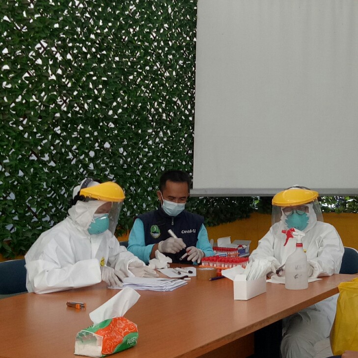 Sebelum memasuki ruangan, seluruh pegawai diwajibkan mencuci tangan terlebih dahulu dan tetap menjaga jarak selama menunggu antrean tes. Pegawai juga diwajibkan untuk tetap mengenakan masker saat kegiatan berlangsung.