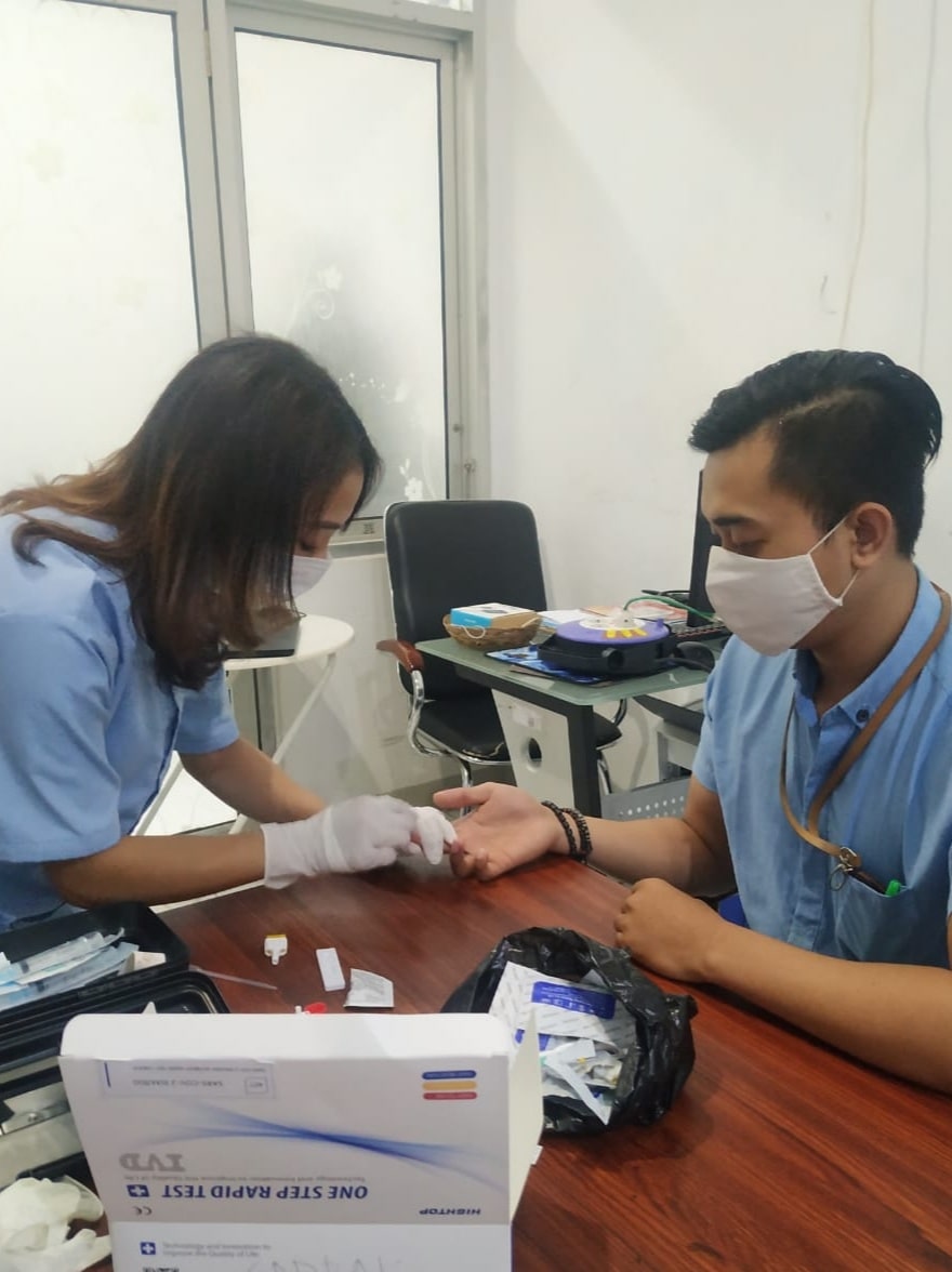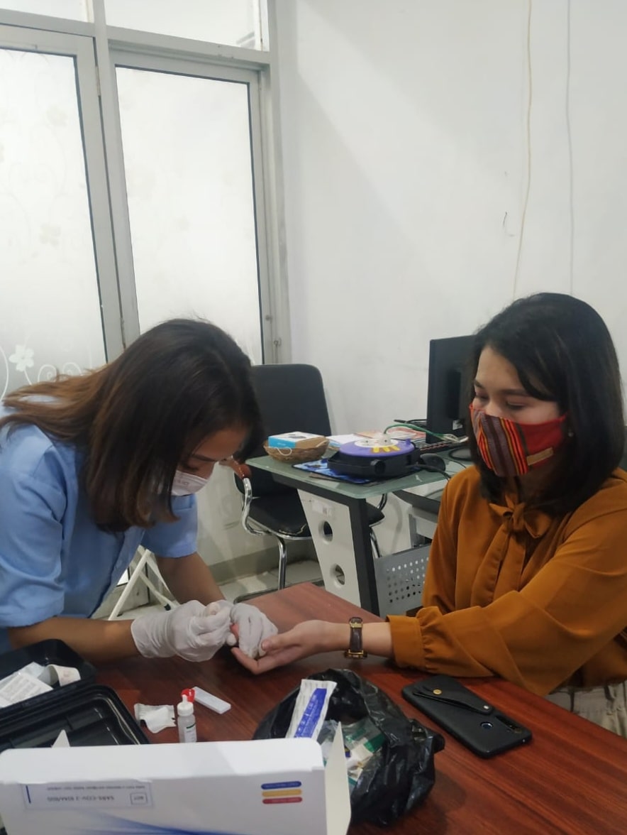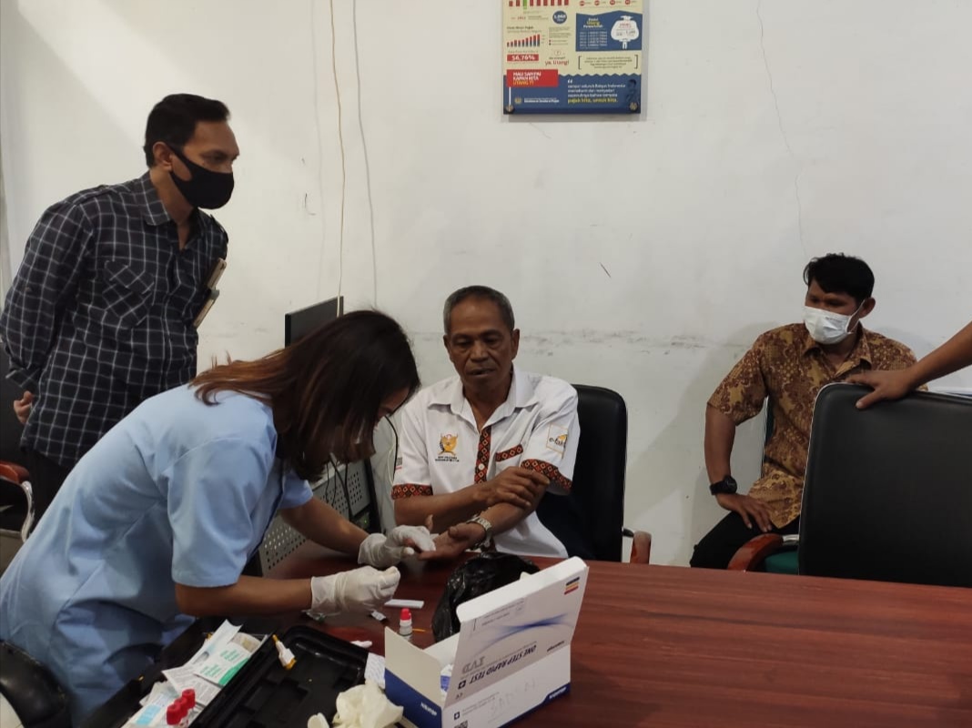 Kantor Penyuluhan, Pelayanan, dan Konsultasi Perpajakan (KP2KP) Makale bekerja sama dengan Dinas Kesehatan Kabupaten Toraja Utara melakukan kegiatan rapid test untuk pegawai KP2KP Makale (Kamis, 6/8). Kegiatan ini dilangsungkan di ruang aula KP2KP Makale di Kabupaten Toraja Utara sebagai upaya pelaksanaan deteksi dini sekaligus mencegah penyebaran virus Covid-19.
