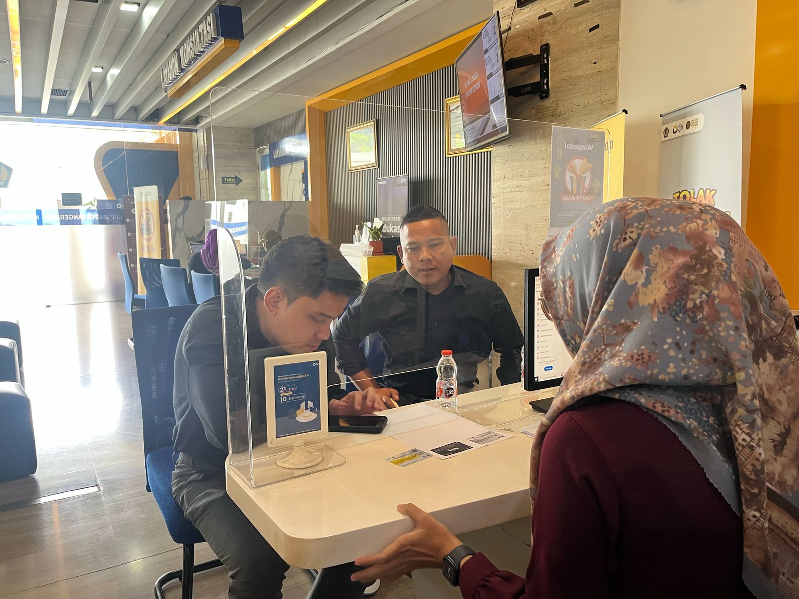 Indah, Petugas TPT KPP Madya Tangerang, melakukan pengecekan berkas dan data yang disampaikan. “Saat ini wajib pajak sudah dapat mendaftarkan NPWP secara online dan mandiri melalui Coretax DJP. Namun, kami tetap melayani wajib pajak yang menyampaikan permohonannya di loket TPT,” ujar Indah.